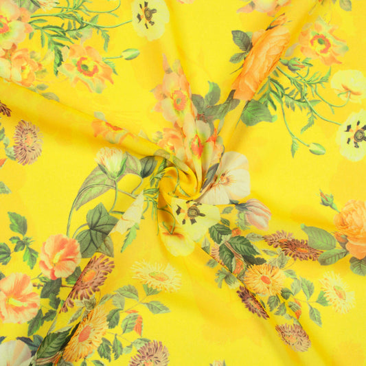 -10% offBright Yellow And Peach Floral Pattern Digital Print Georgette Fabric Bright Yellow And Peach Floral Pattern Digital Print Georgette Fabric