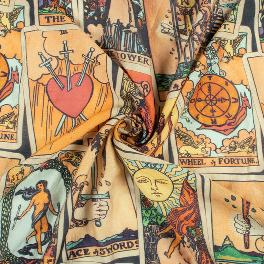 Peach And Multi-Color Egyptian Pattern Digital Print Ultra Premium Butter Crepe Fabric Peach And Multi-Color Egyptian Pattern Digital Print Ultra Premium Butter Crepe Fabric