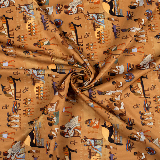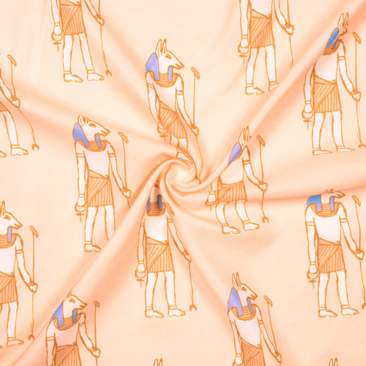 Peanut Beige And Peach Egyptian Pattern Digital Print Ultra Premium Butter Crepe Fabric Peanut Beige And Peach Egyptian Pattern Digital Print Ultra Premium Butter Crepe Fabric