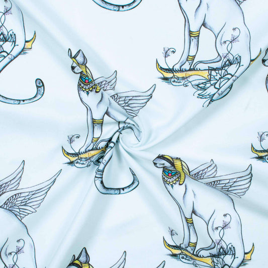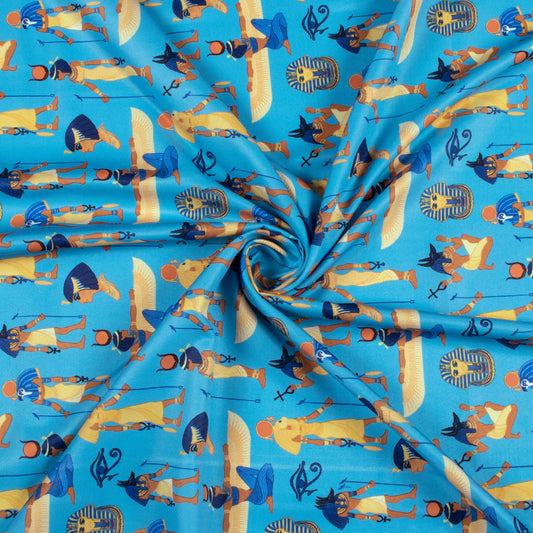 Deep Sky Blue And Mellow Yellow Egyptian Pattern Digital Print Ultra Premium Butter Crepe Fabric Deep Sky Blue And Mellow Yellow Egyptian Pattern Digital Print Ultra Premium Butter Crepe Fabric