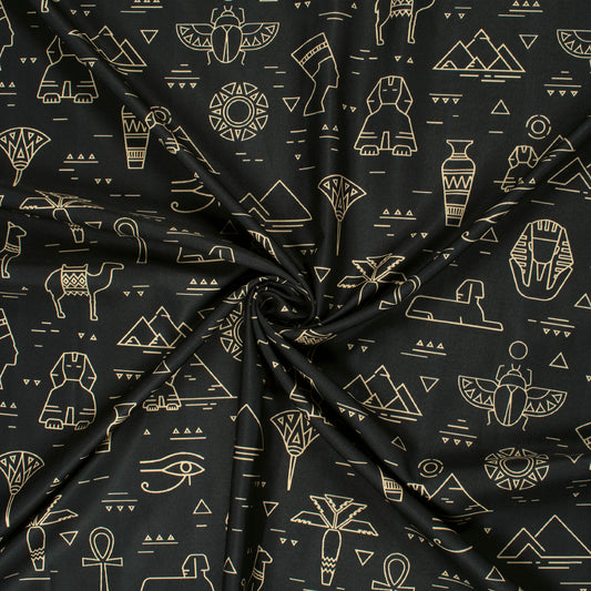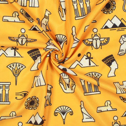 Mustard Yellow And Black Egyptian Pattern Digital Print Twill Fabric (Width 56 Inches) Mustard Yellow And Black Egyptian Pattern Digital Print Twill Fabric (Width 56 Inches)