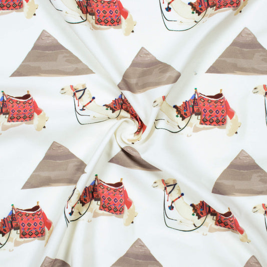 Ivory Cream And Red Egyptian Pattern Digital Print Ultra Premium Butter Crepe Fabric Ivory Cream And Red Egyptian Pattern Digital Print Ultra Premium Butter Crepe Fabric