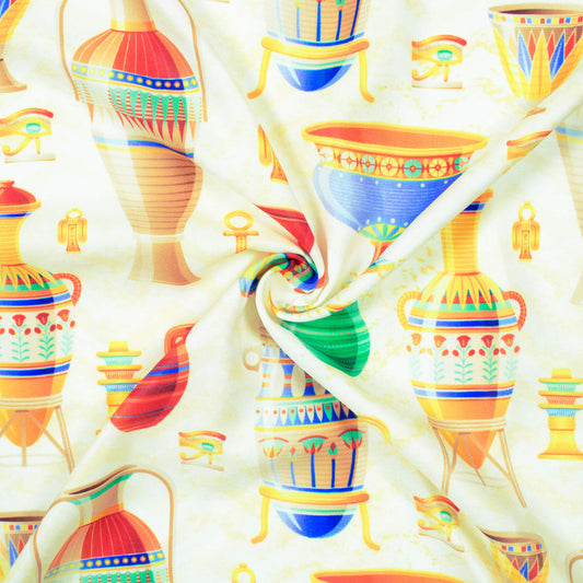 Cream And Yellow Egyptian Pattern Digital Print Ultra Premium Butter Crepe Fabric Cream And Yellow Egyptian Pattern Digital Print Ultra Premium Butter Crepe Fabric