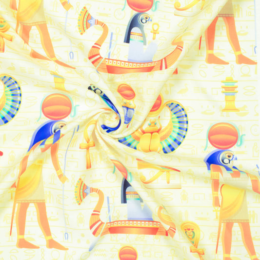 Fire Yellow And Cream Egyptian Pattern Digital Print Ultra Premium Butter Crepe Fabric Fire Yellow And Cream Egyptian Pattern Digital Print Ultra Premium Butter Crepe Fabric