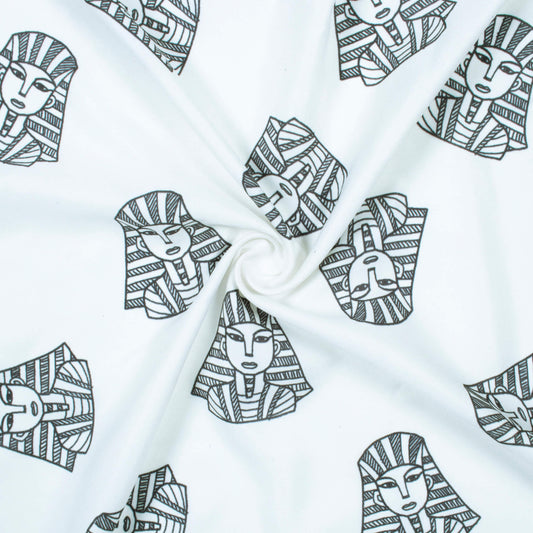 Pearl White And Black Egyptian Pattern Digital Print Ultra Premium Butter Crepe Fabric Pearl White And Black Egyptian Pattern Digital Print Ultra Premium Butter Crepe Fabric