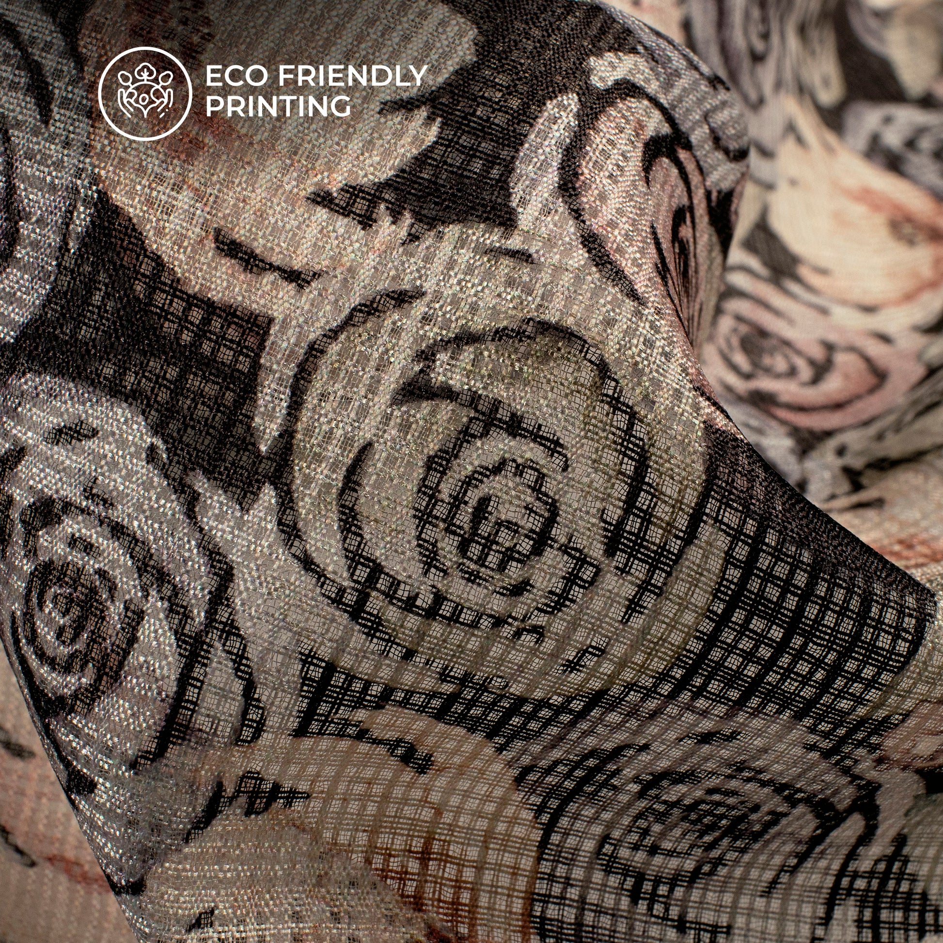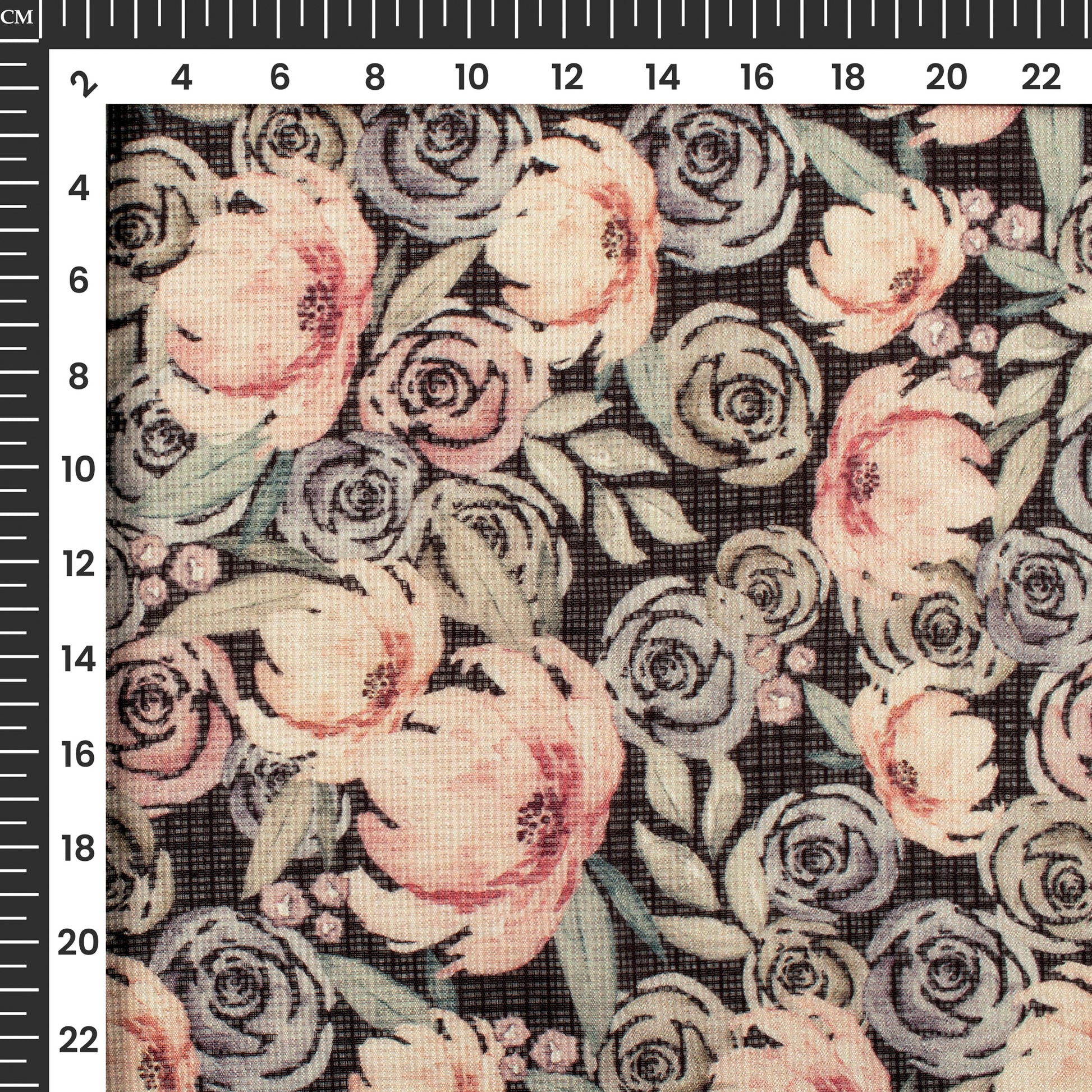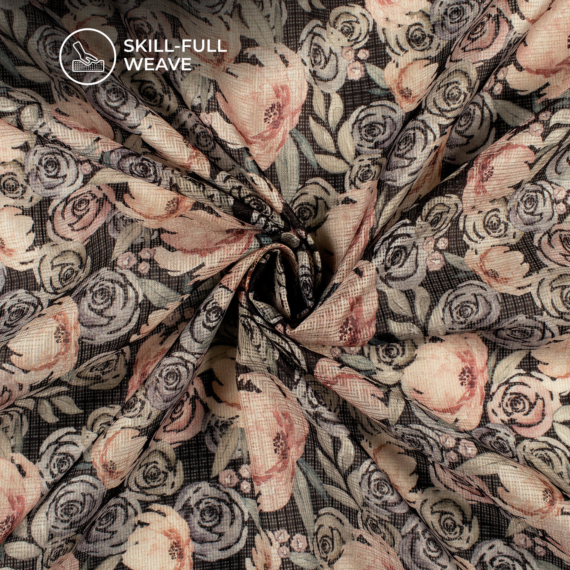 Black And Peach Floral Digital Print Kota Doria Fabric