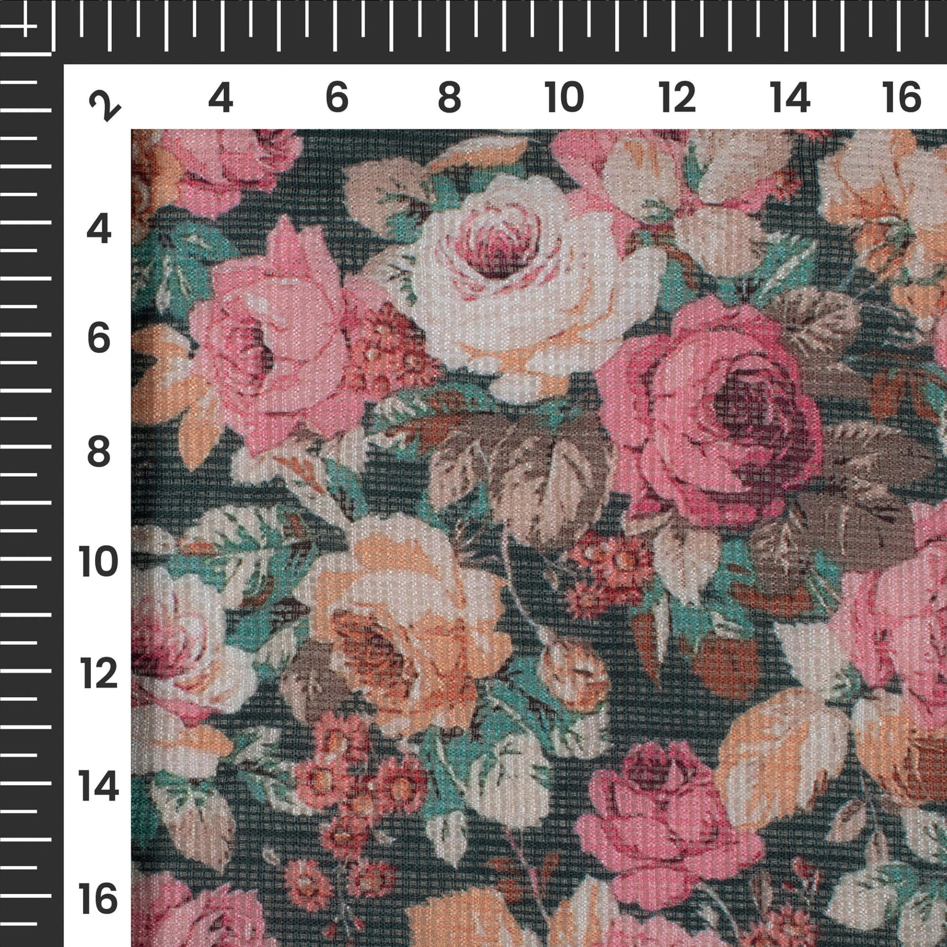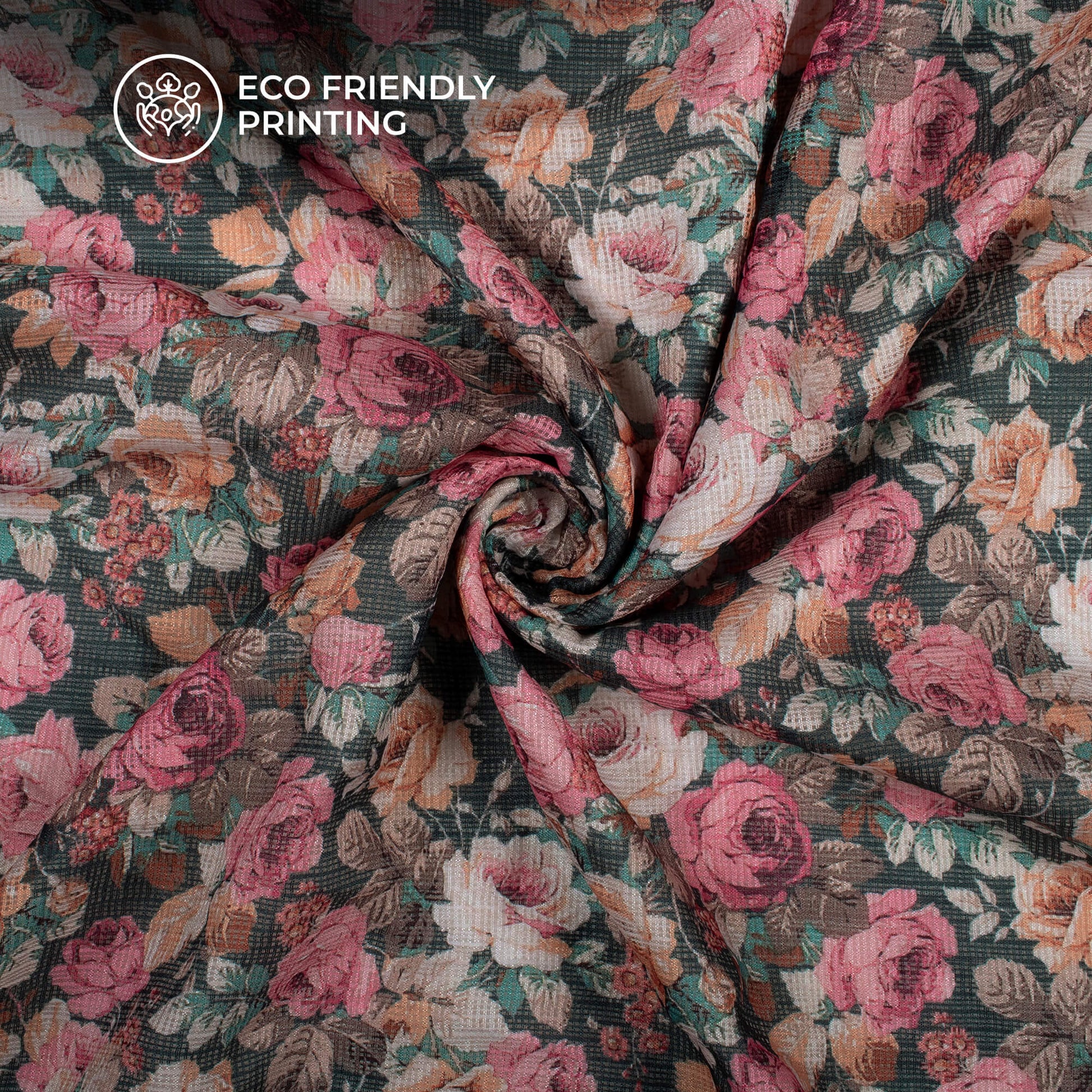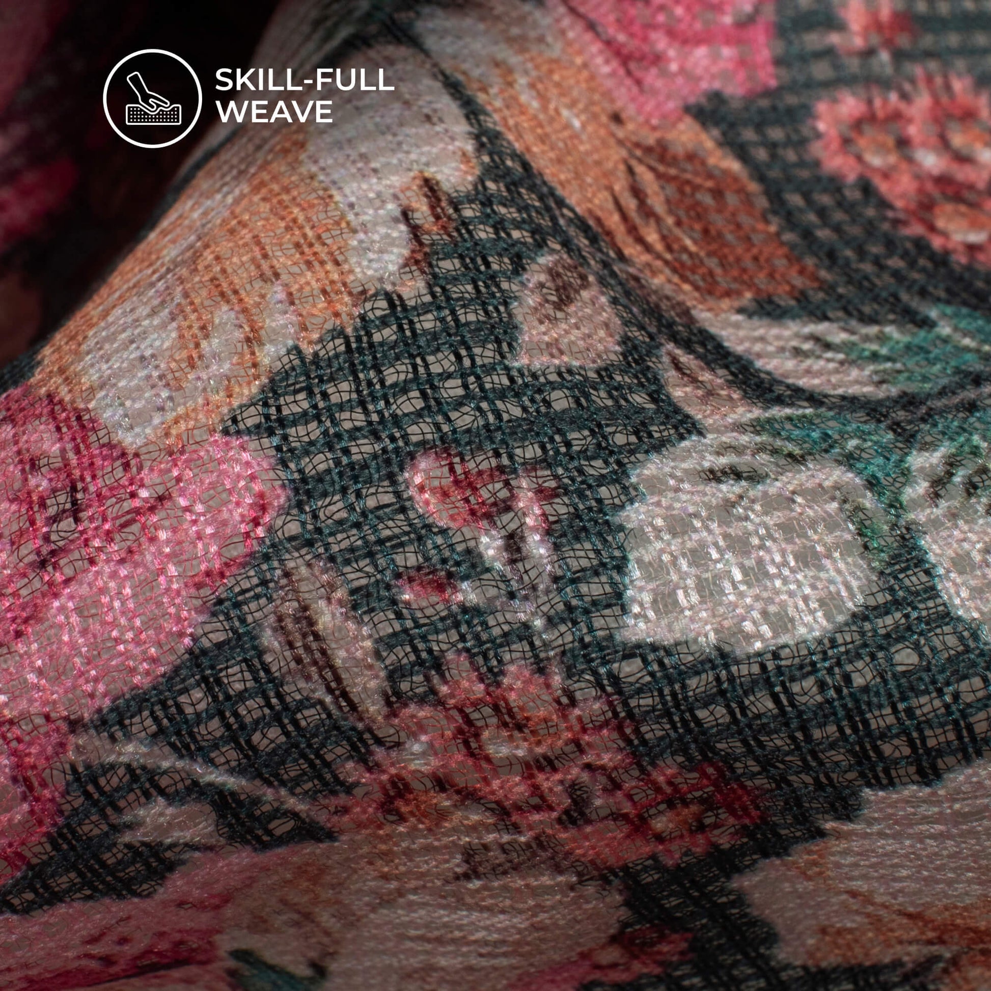 Hot Pink Floral Digital Print Kota Doria Fabric