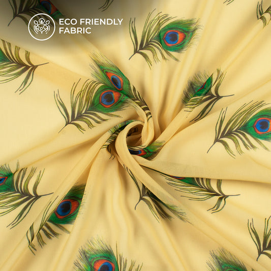 Cream Peacock Feather Digital Print Georgette Fabric Cream Peacock Feather Digital Print Georgette Fabric