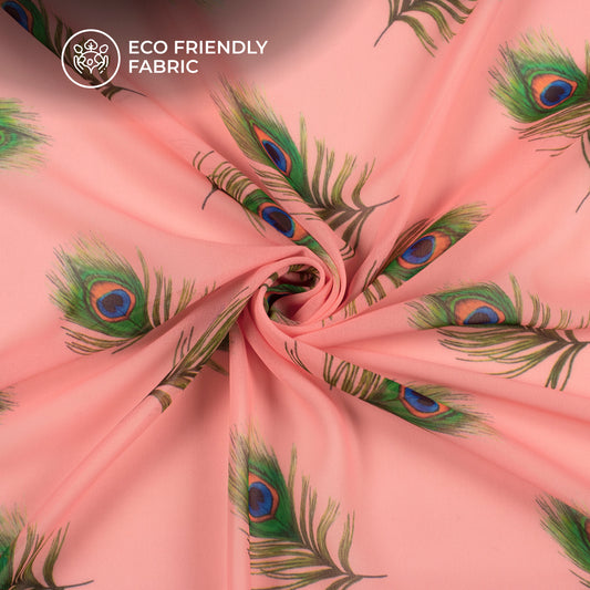 -10% offFlamingo Pink Peacock Feather Digital Print Georgette Fabric Flamingo Pink Peacock Feather Digital Print Georgette Fabric