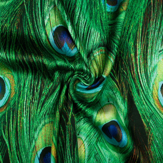 -10% offFestive Finds: Peacock Digital Print Japan Satin Fabric Festive Finds: Peacock Digital Print Japan Satin Fabric