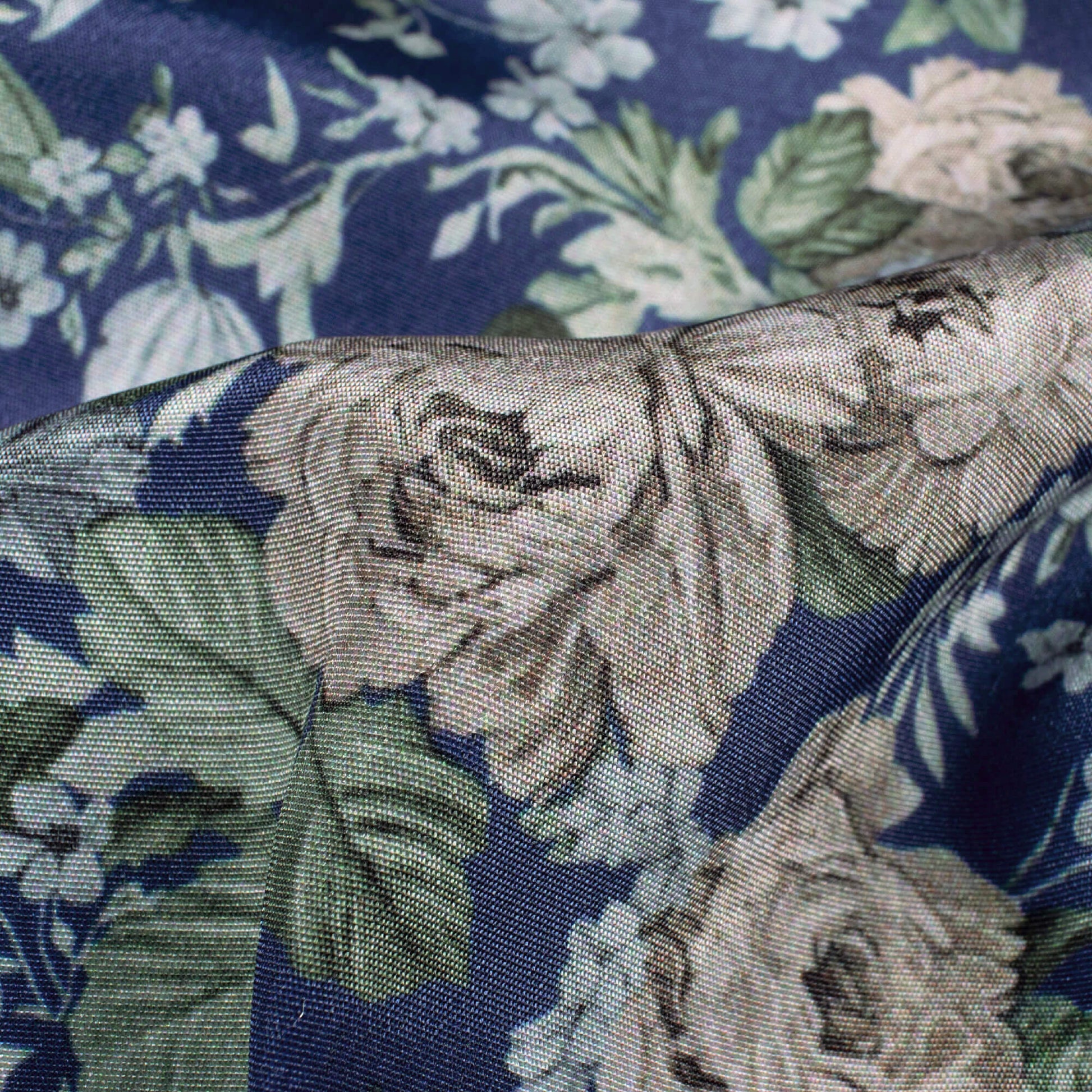 Navy Blue And Fawn Beige Floral Pattern Digital Print Crepe Silk Fabric