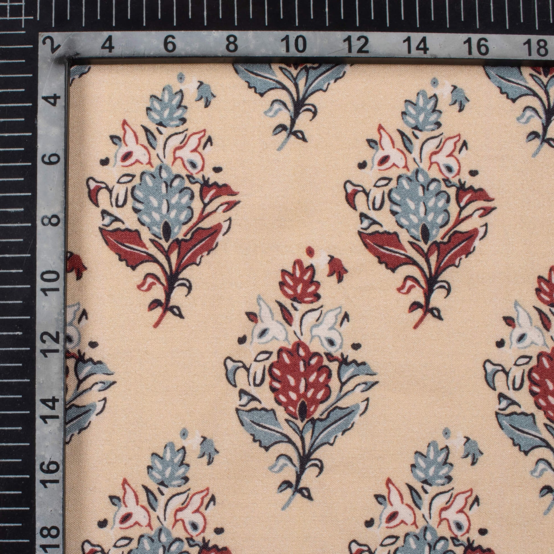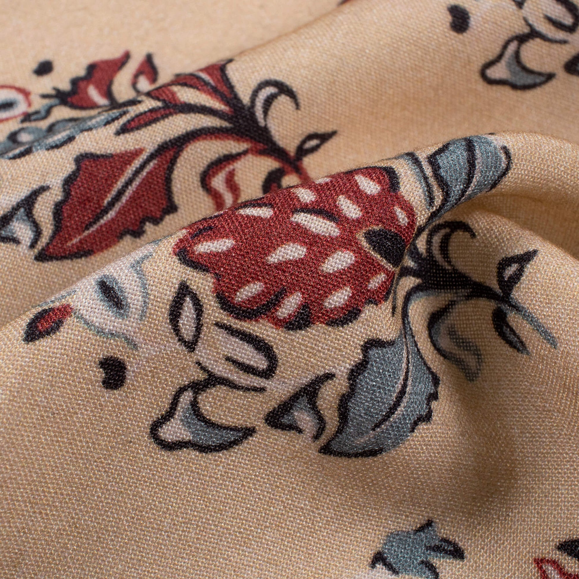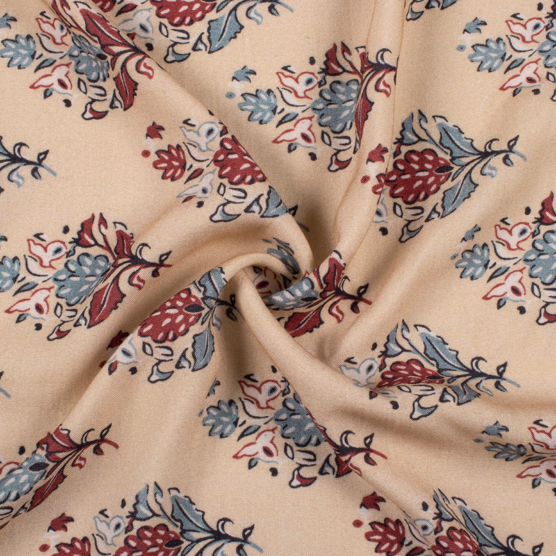 Oat Beige And Maroon Floral Pattern Digital Print Viscose Rayon Fabric (Width 58 Inches)