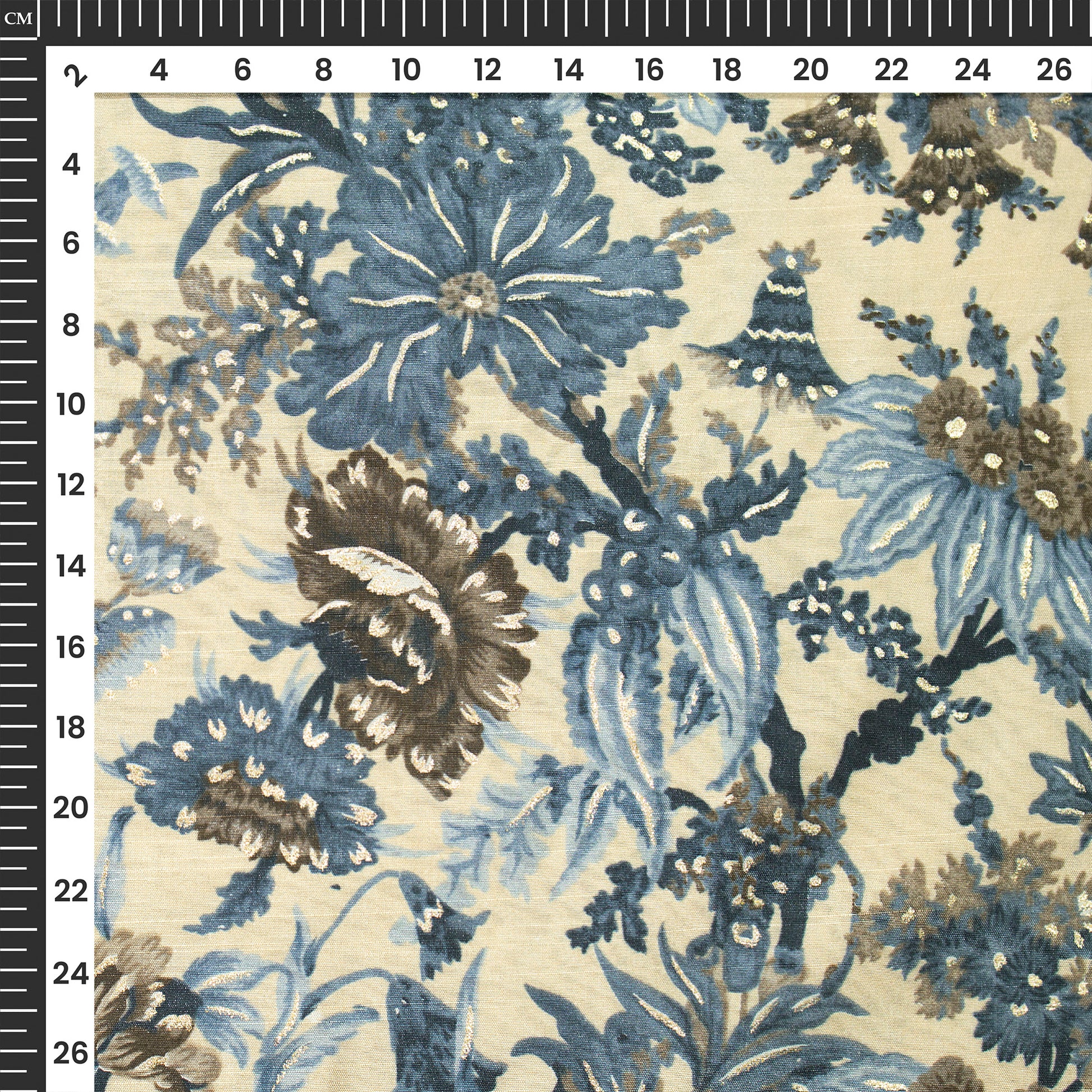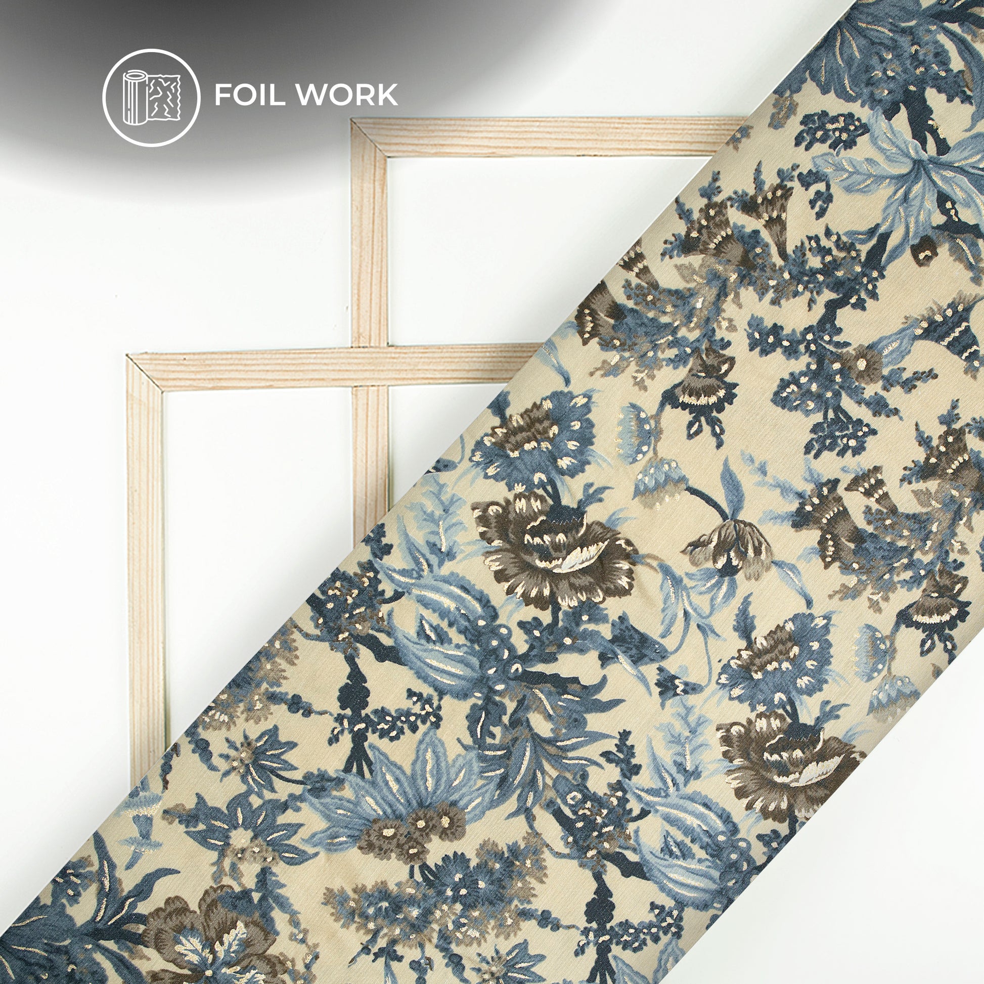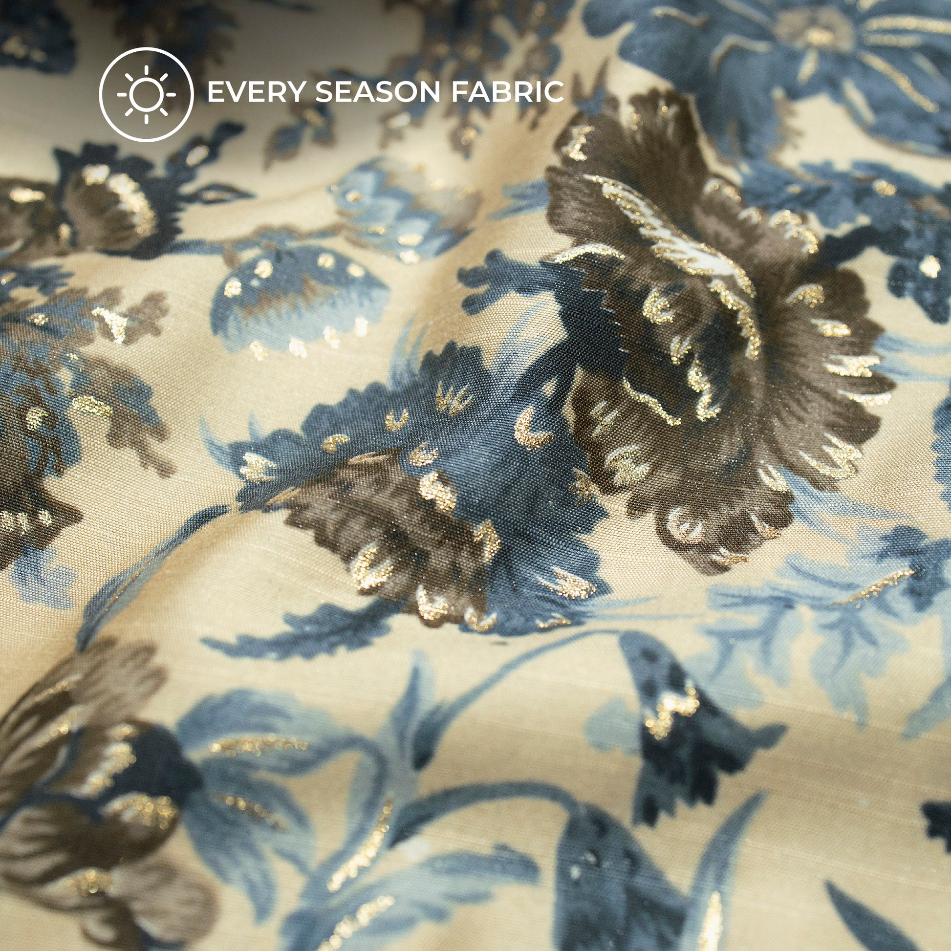 Cloud Grey Floral Gold Foil Work Royal Slub Silk Fabric