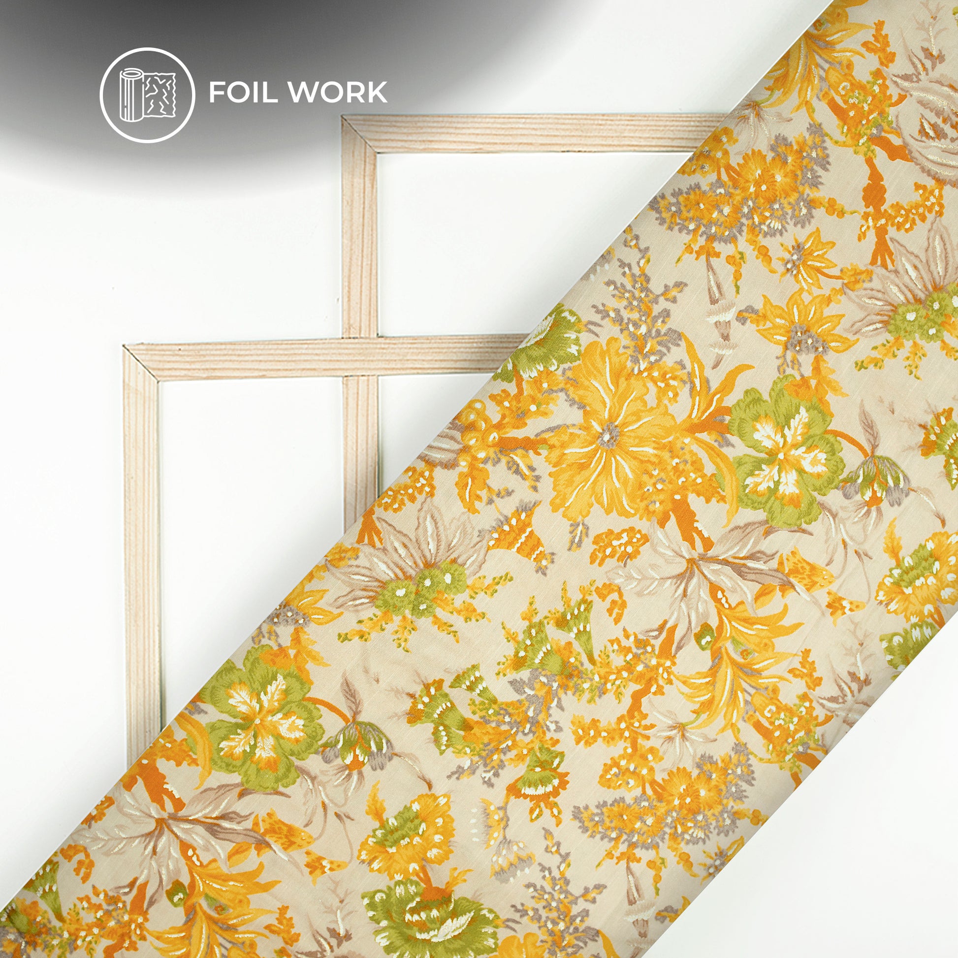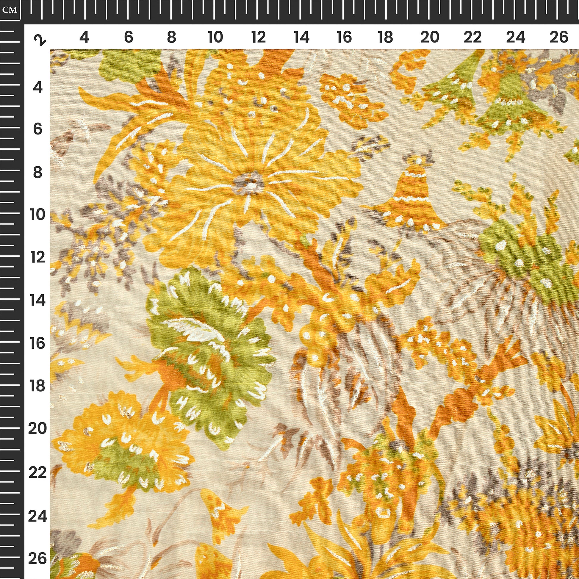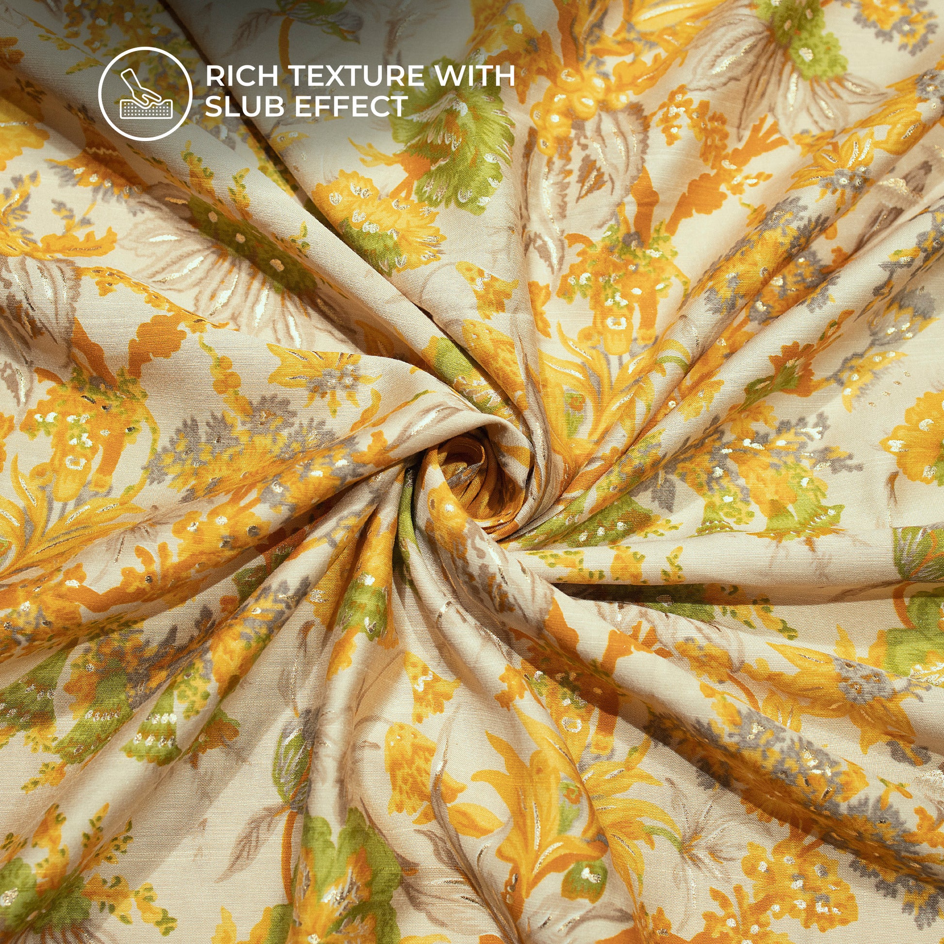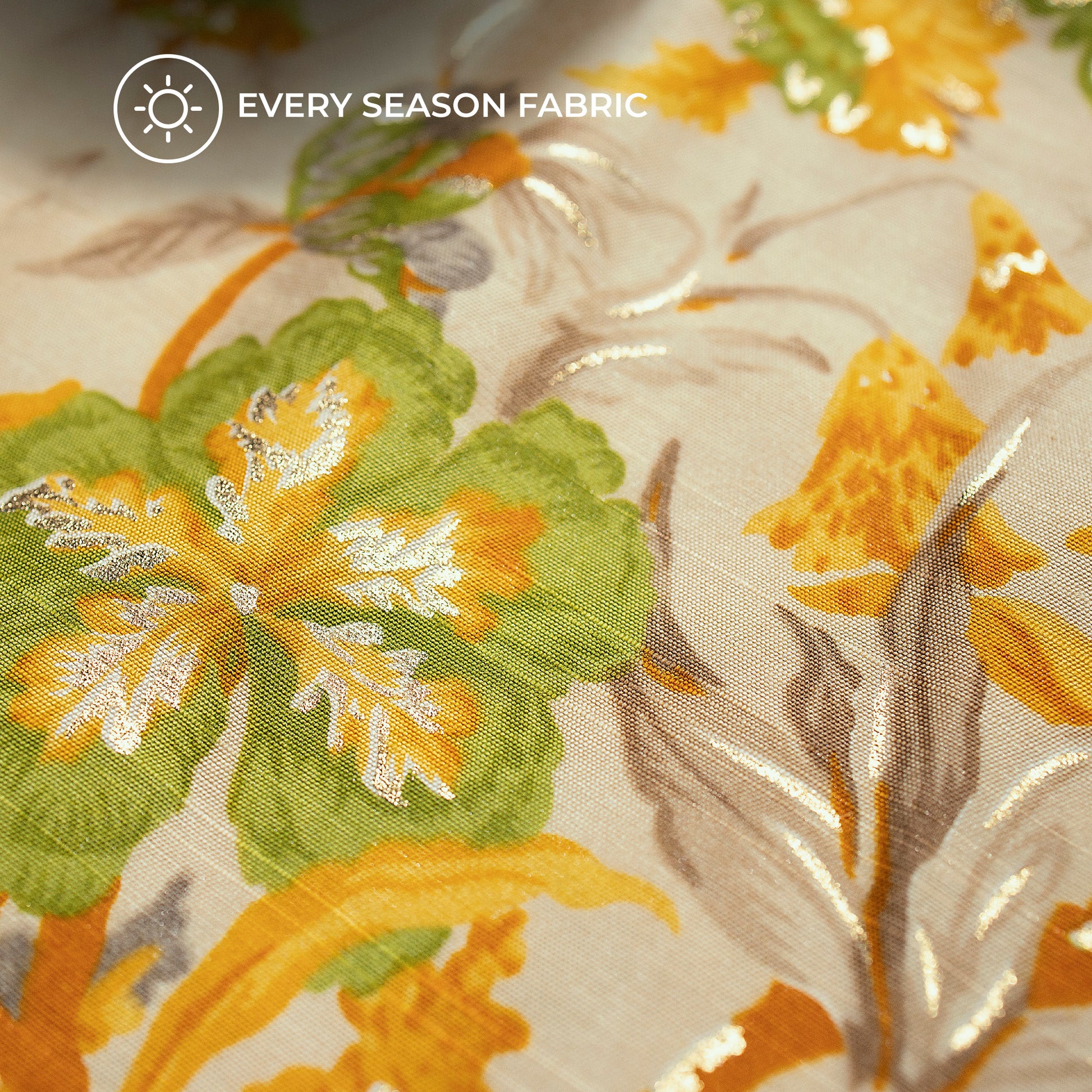 Medallion Yellow Floral Gold Foil Work Royal Slub Silk Fabric