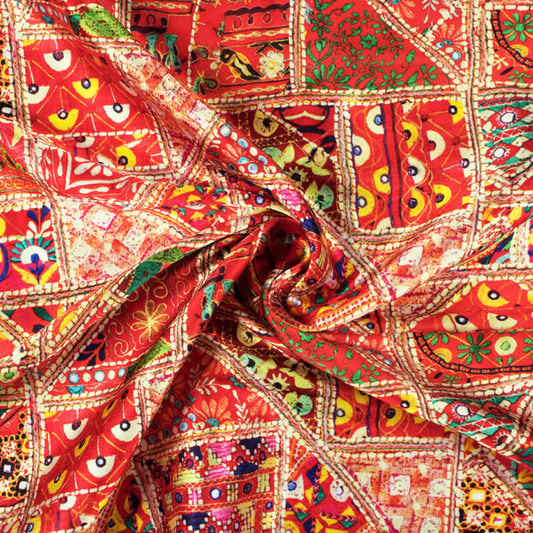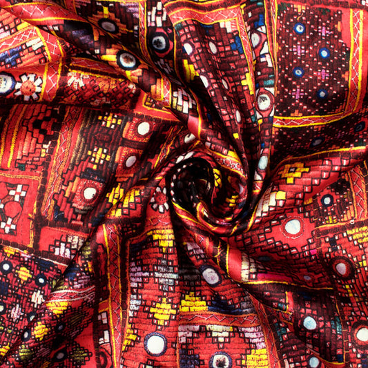 -10% offRed Gamthee Pattern Digital Printed Japan Satin Fabric Red Gamthee Pattern Digital Printed Japan Satin Fabric