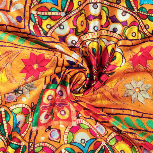 -10% offOrange Gamthee Pattern Digital Printed Japan Satin Fabric Orange Gamthee Pattern Digital Printed Japan Satin Fabric