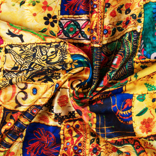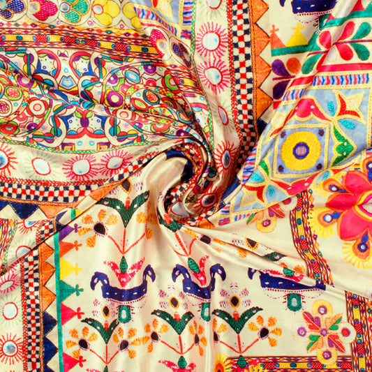 -10% offMulti-Color Gamthee Pattern Digital Printed Japan Satin Fabric Multi-Color Gamthee Pattern Digital Printed Japan Satin Fabric