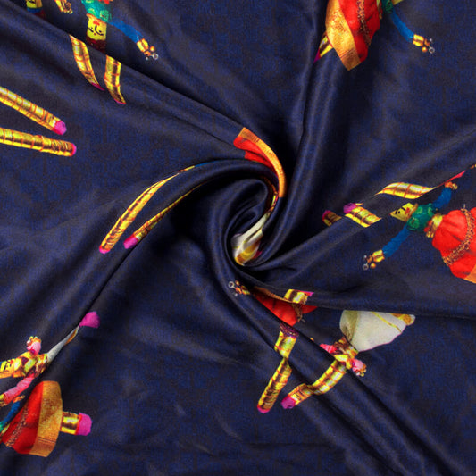 -10% offNavy Blue And Gold Yellow Gamthee Pattern Digital Printed Japan Satin Fabric Navy Blue And Gold Yellow Gamthee Pattern Digital Printed Japan Satin Fabric