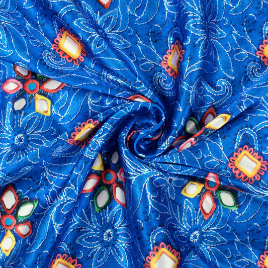 -10% offSapphire Blue And Punch Pink Gamthee Pattern Digital Print Japan Satin Fabric Sapphire Blue And Punch Pink Gamthee Pattern Digital Print Japan Satin Fabric