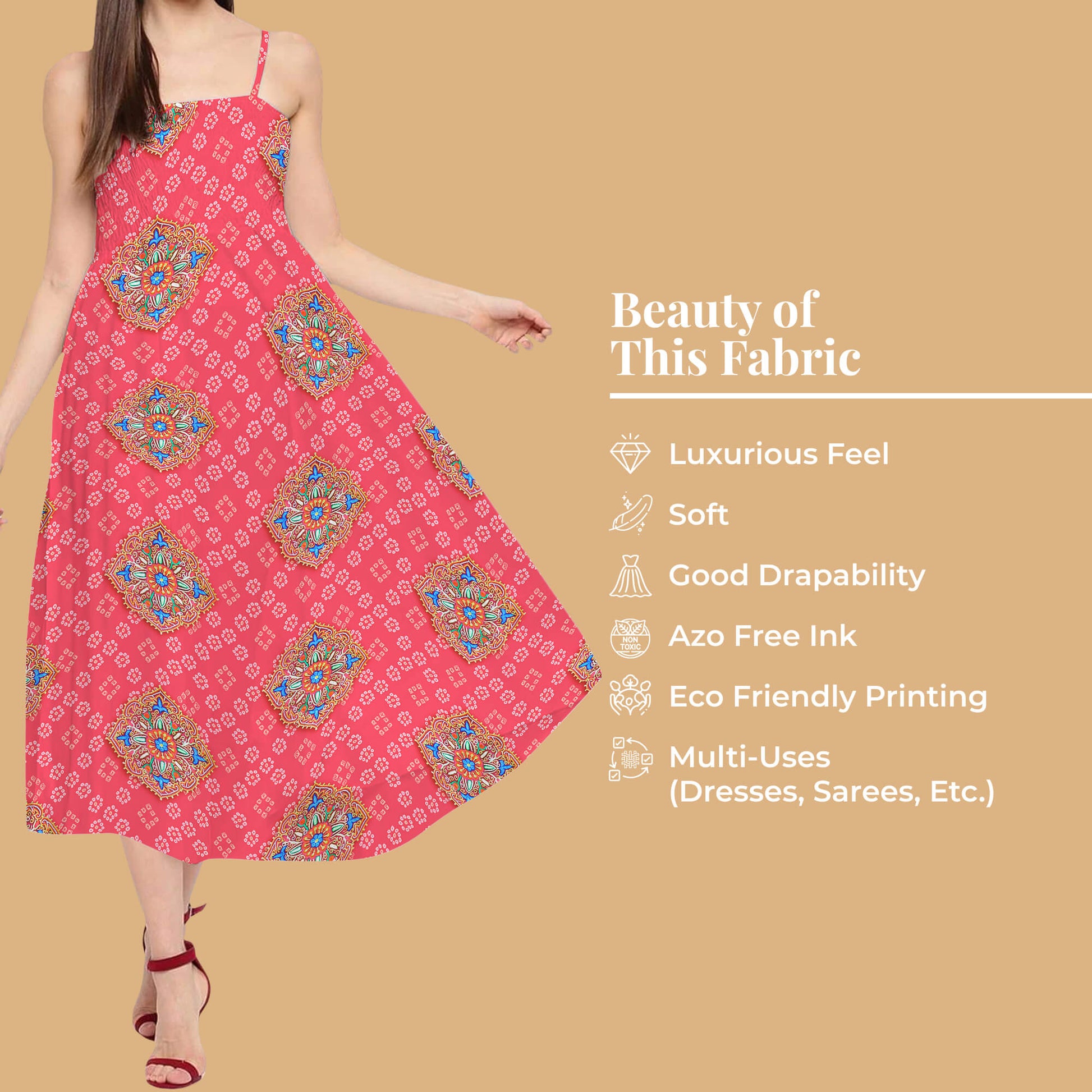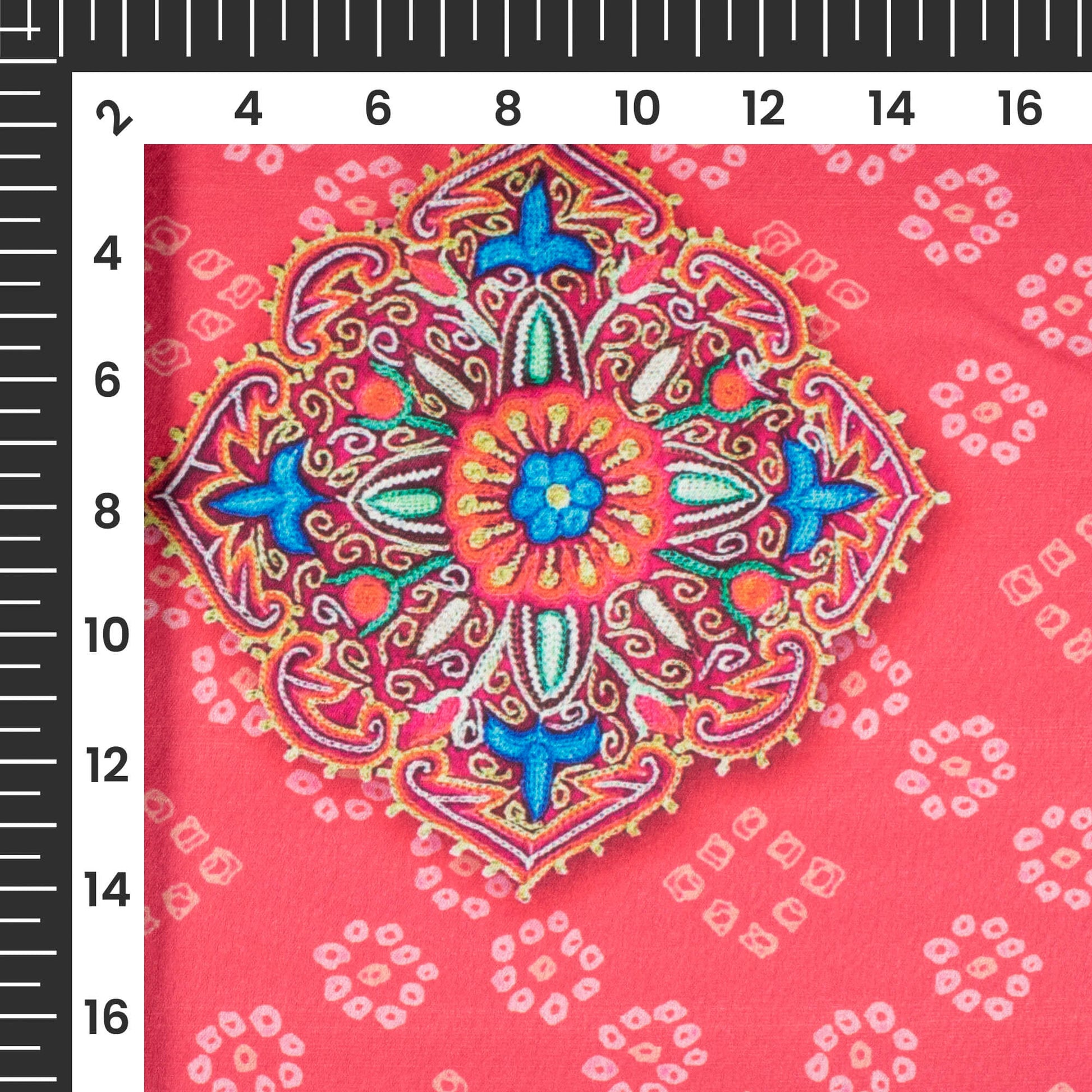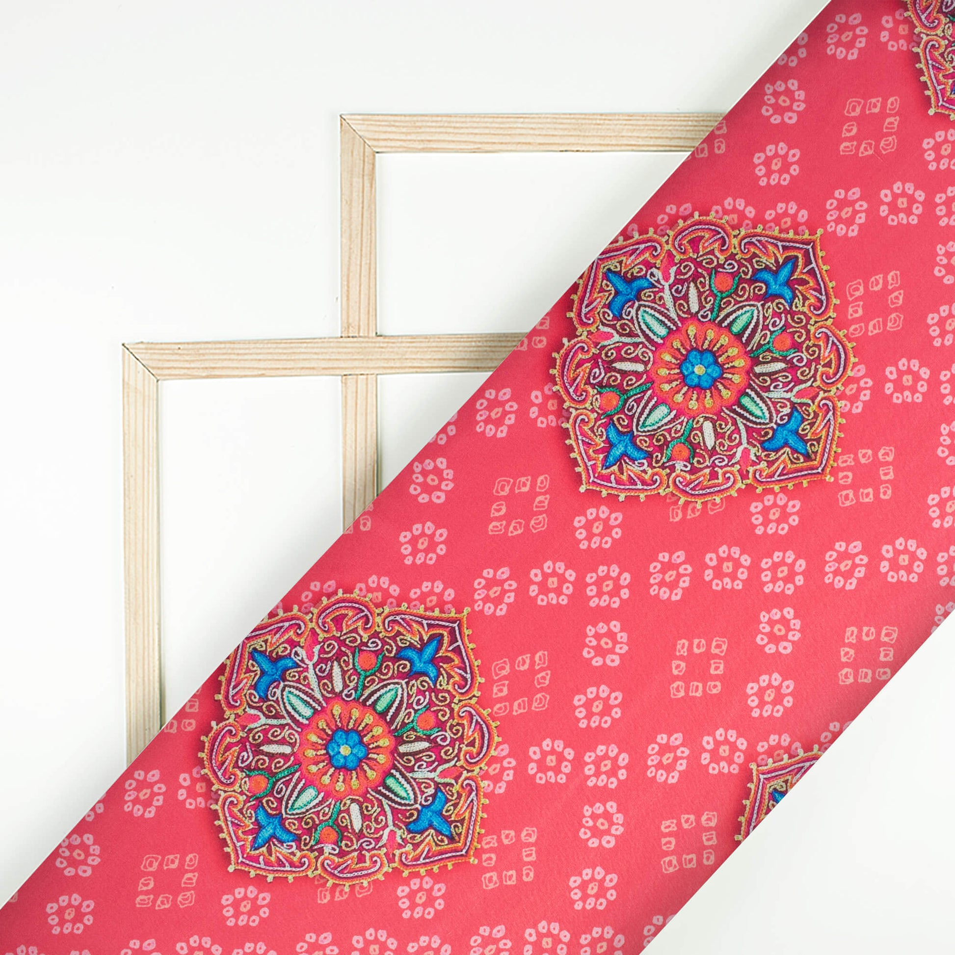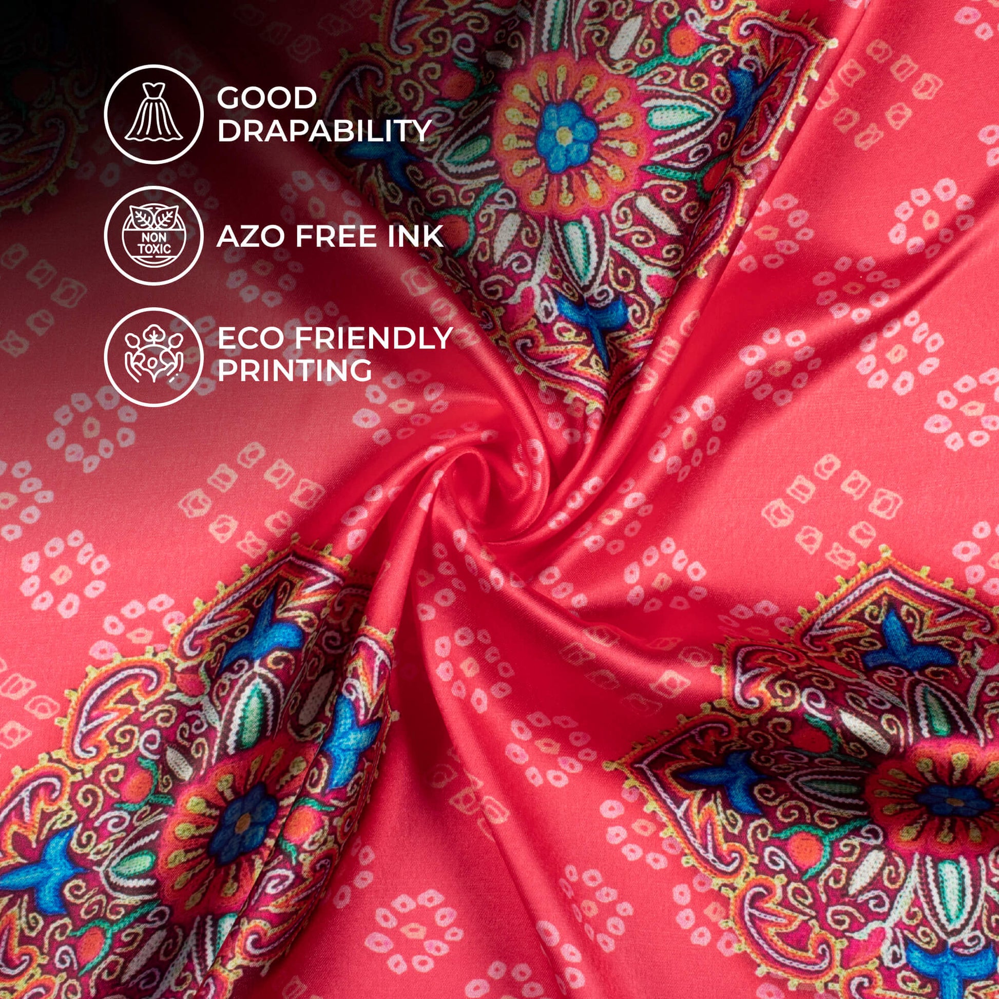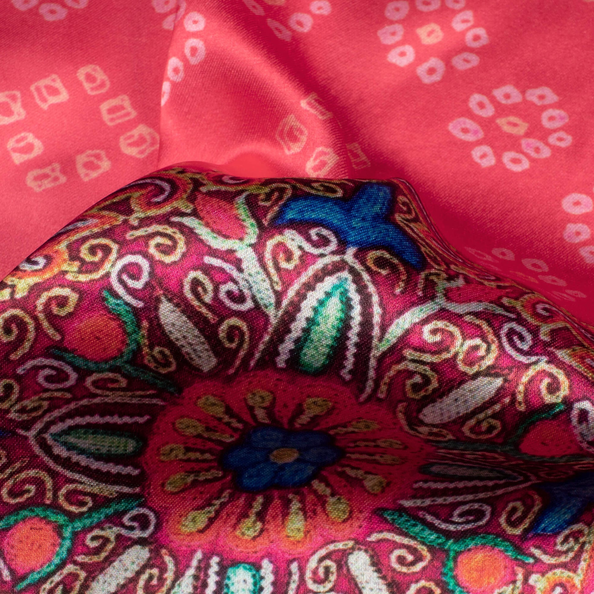 Dark Pink And Sky Blue Gamthee Pattern Digital Print Japan Satin Fabric