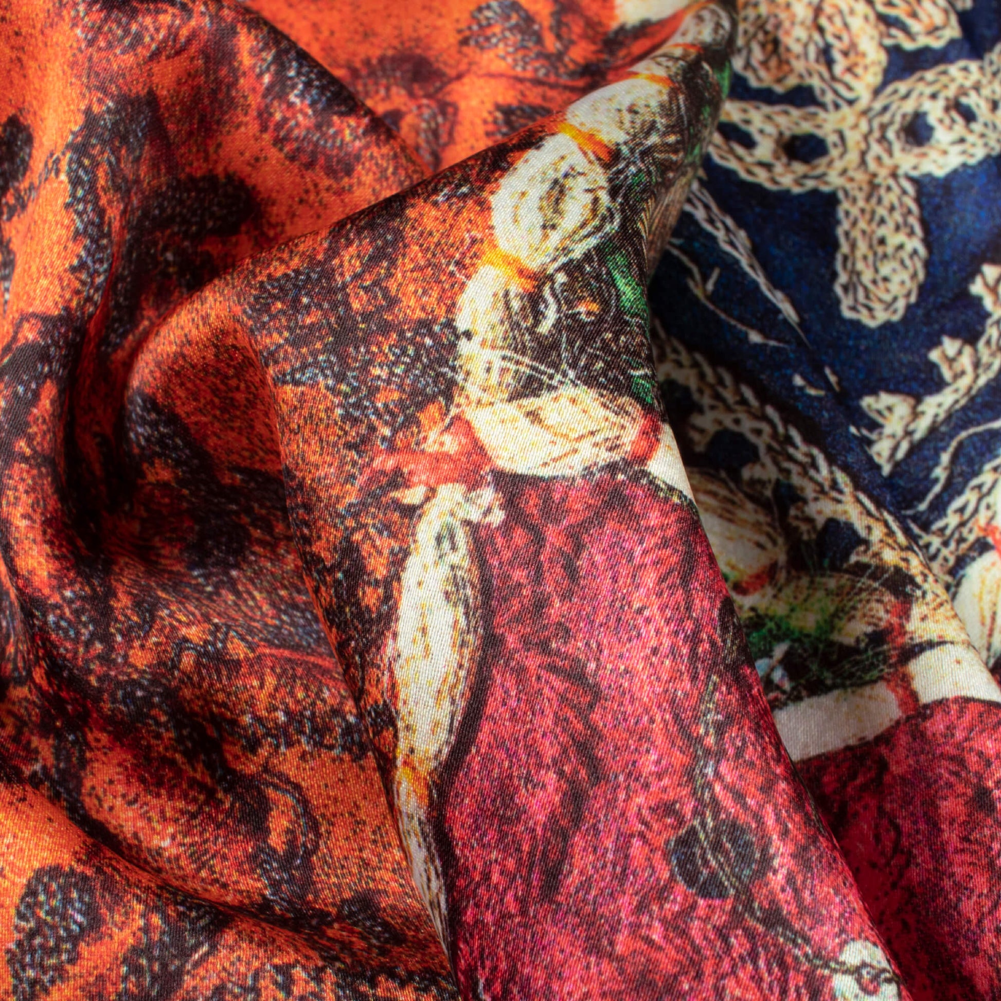 Multi-Color Gamthee Pattern Digital Printed Japan Satin Fabric