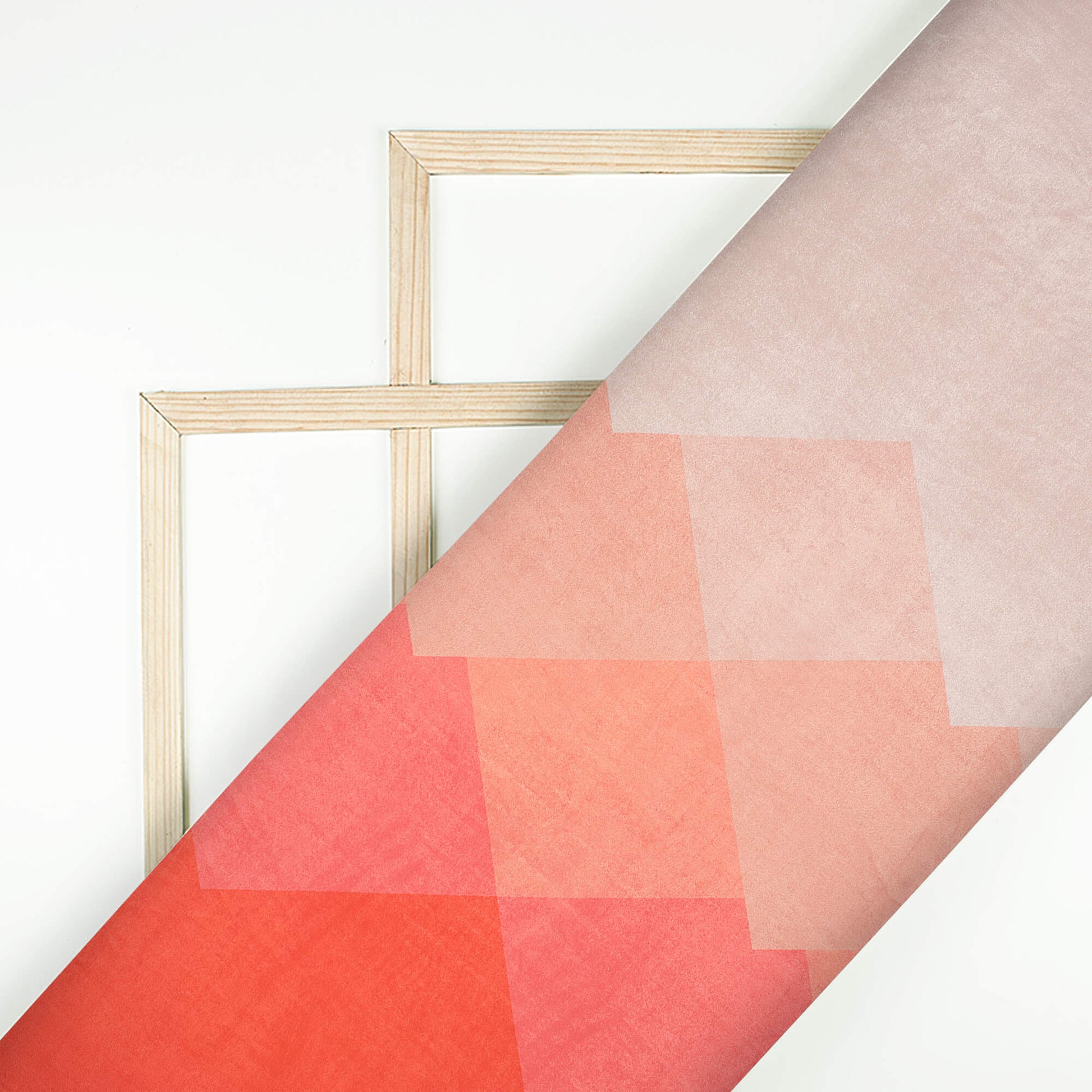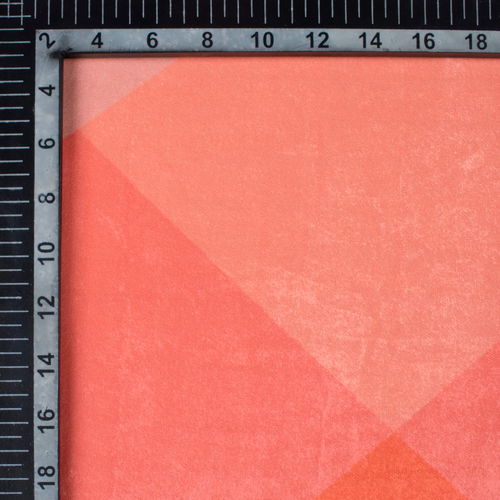 Coral Orange And Red Geometric Pattern Digital Print Premium Velvet Fabric