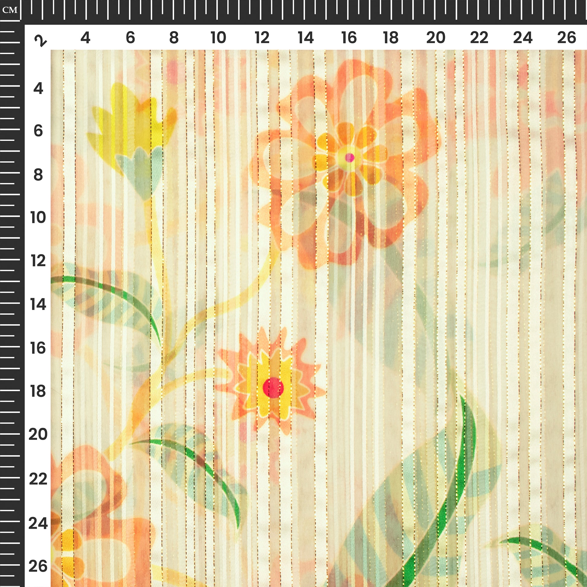 Trendy Floral And Leaf Digital Print Golden Lurex Georgette Fabric