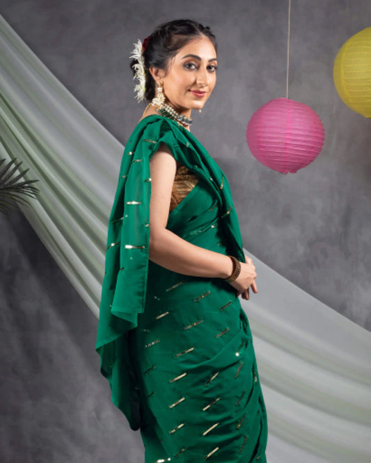 Dark Green Geometric Pattern Premium Sequins Georgette Saree Dark Green Geometric Pattern Premium Sequins Georgette Saree