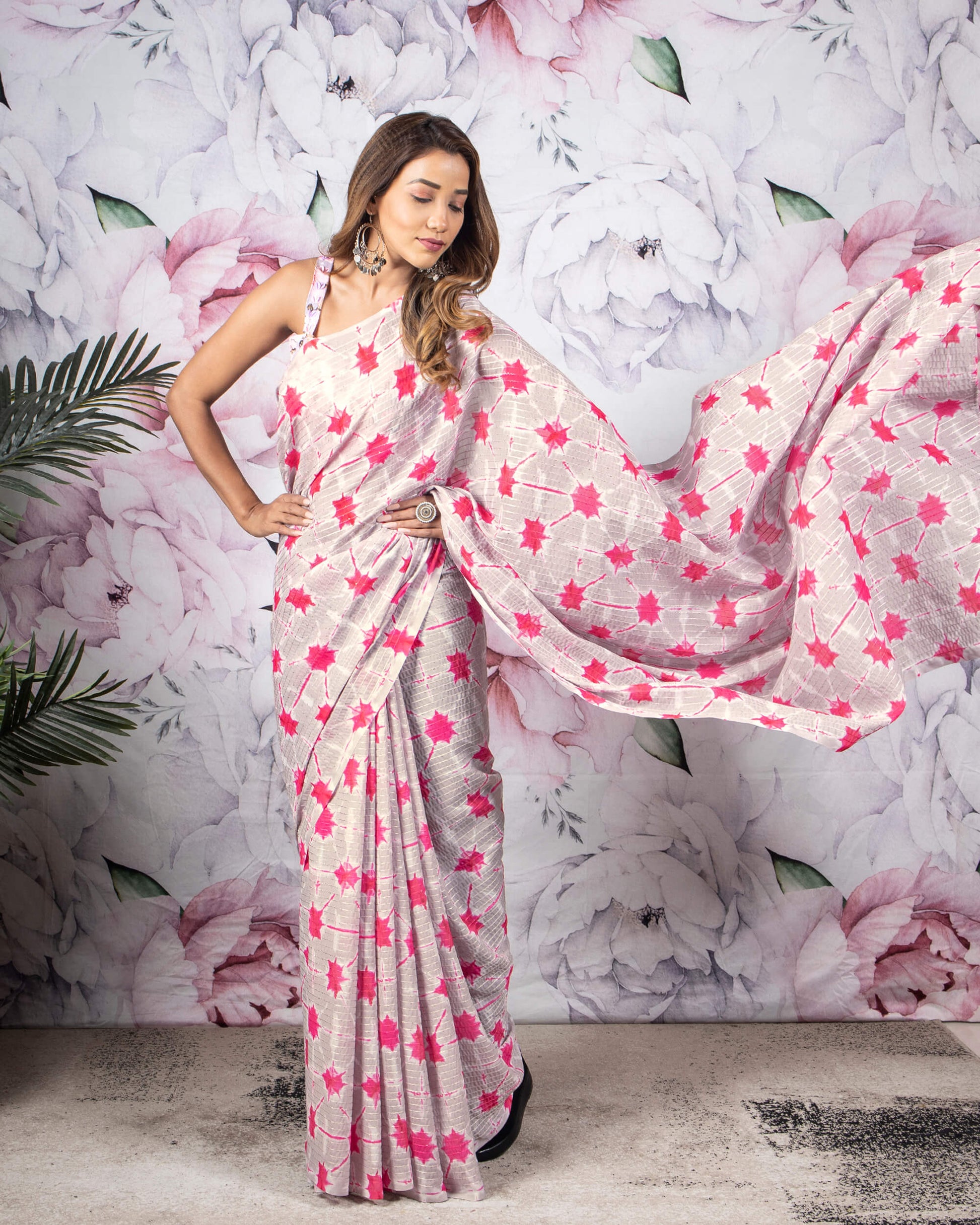 Fabcurate's saree collection will upgrade your dressing style. Highly rated fabrics such as Liquid Organza, Japan satin, Chinon Chiffon, Uppada Silk, Georgette, have been drawn into gorgeous sarees. Wear a class and be a trend maker, with these new sets of sarees. These fabrics are durable, have good drapability, soft when touching such as silk.
