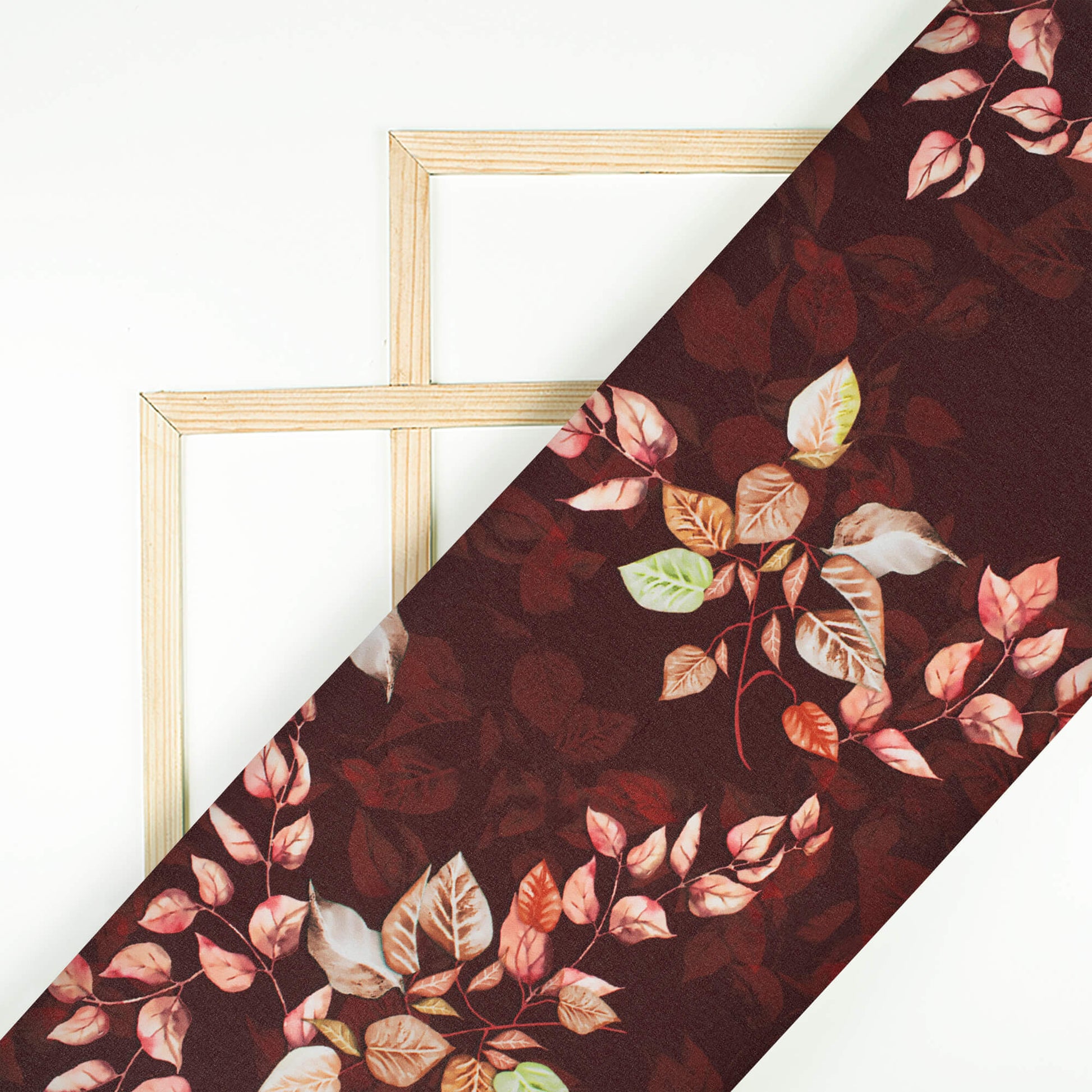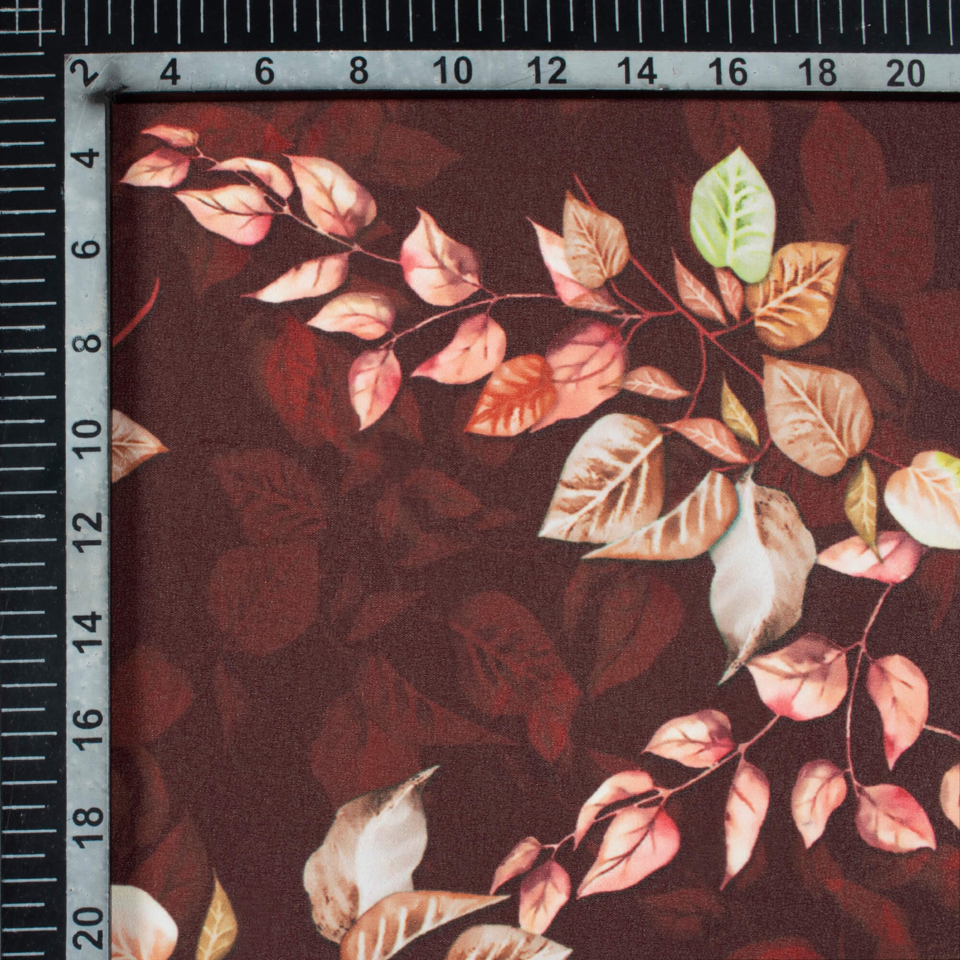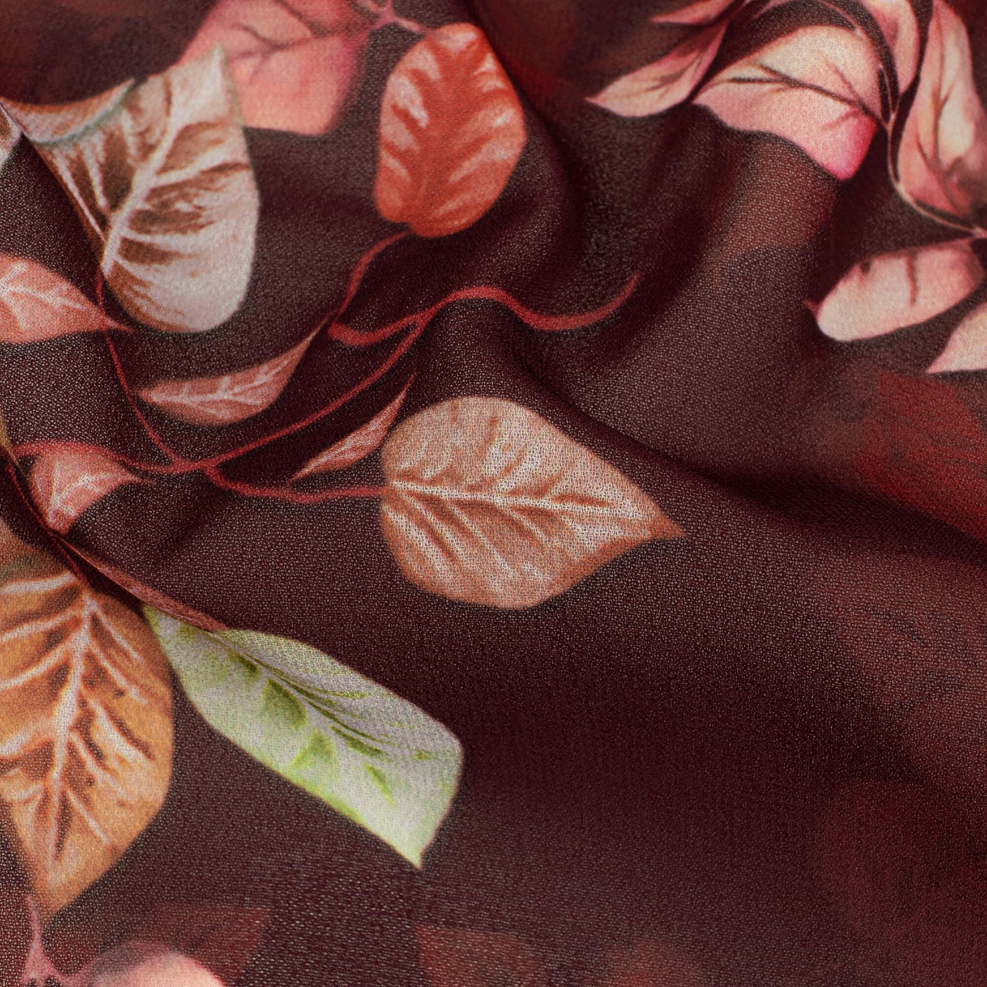 Hickory Brown And Brick Pink Leaf Pattern Digital Print Georgette Fabric