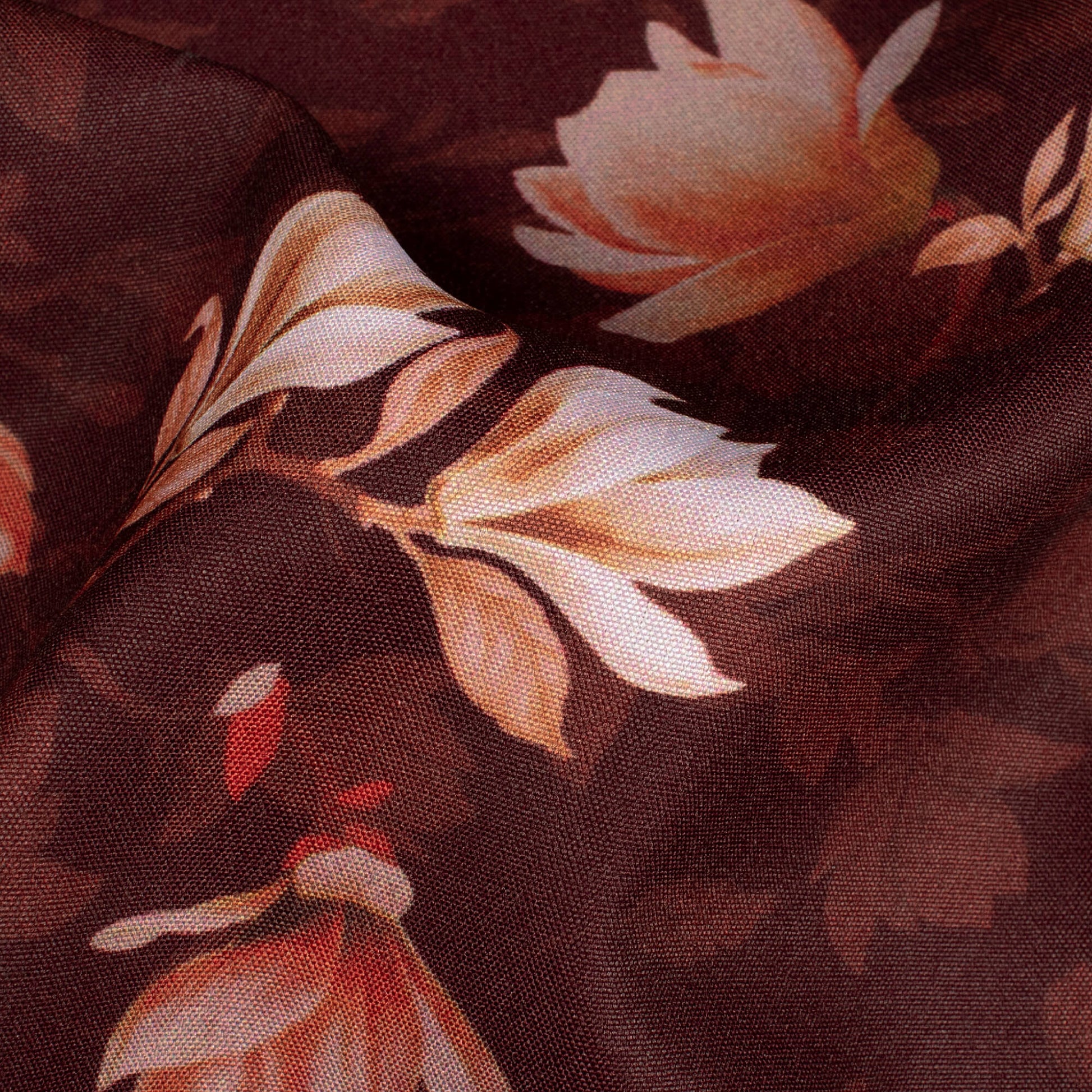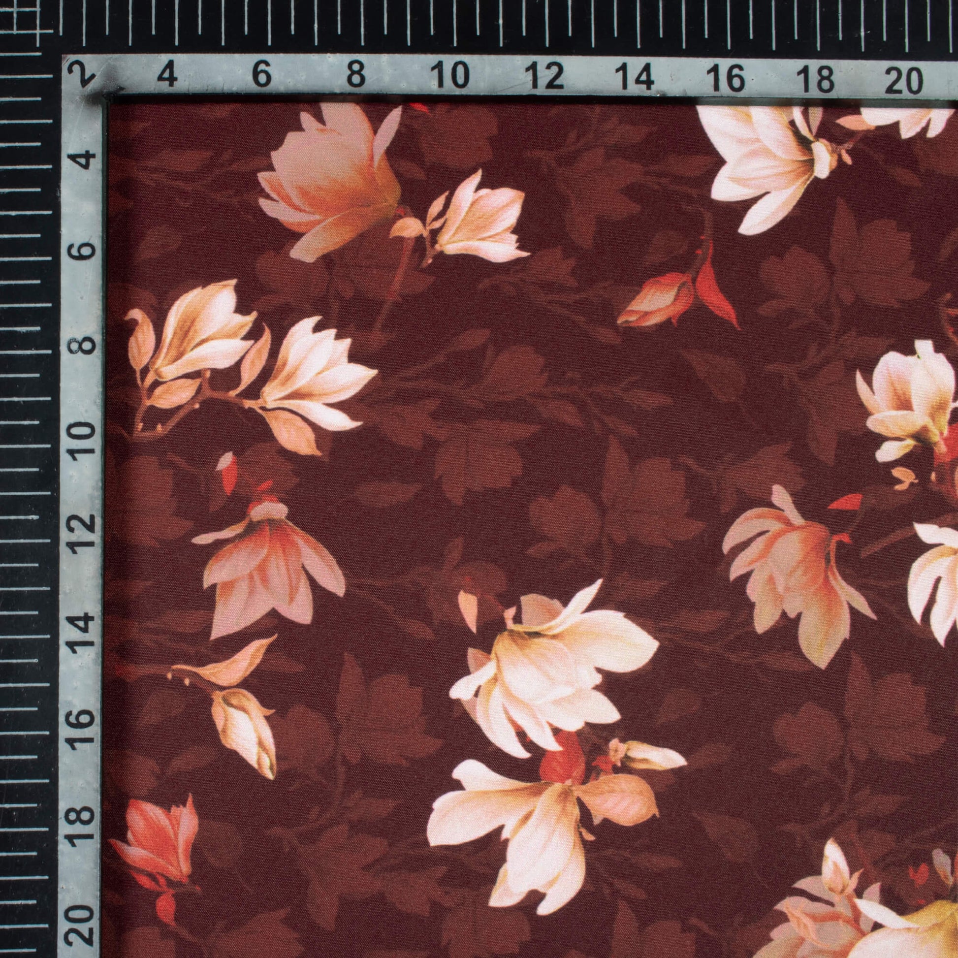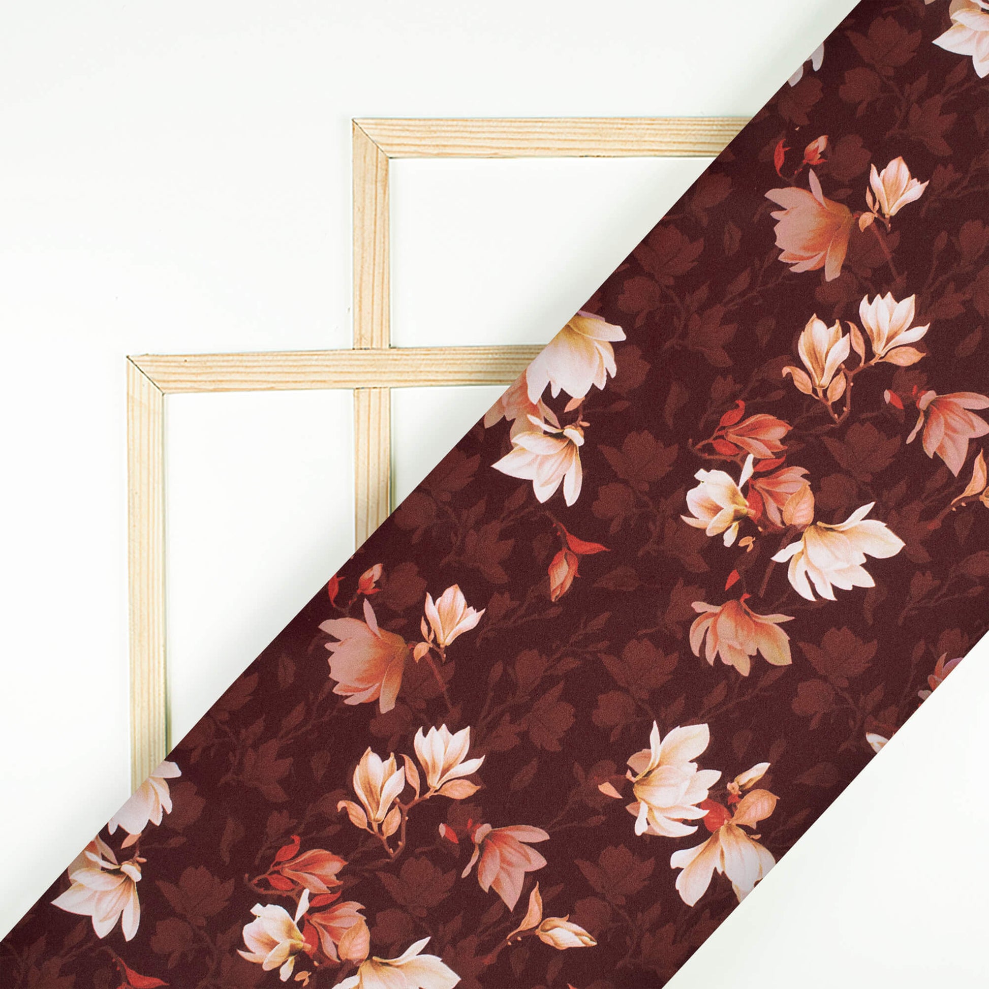 Hickory Brown And Peach Floral Pattern Digital Print Ultra Premium Butter Crepe Fabric