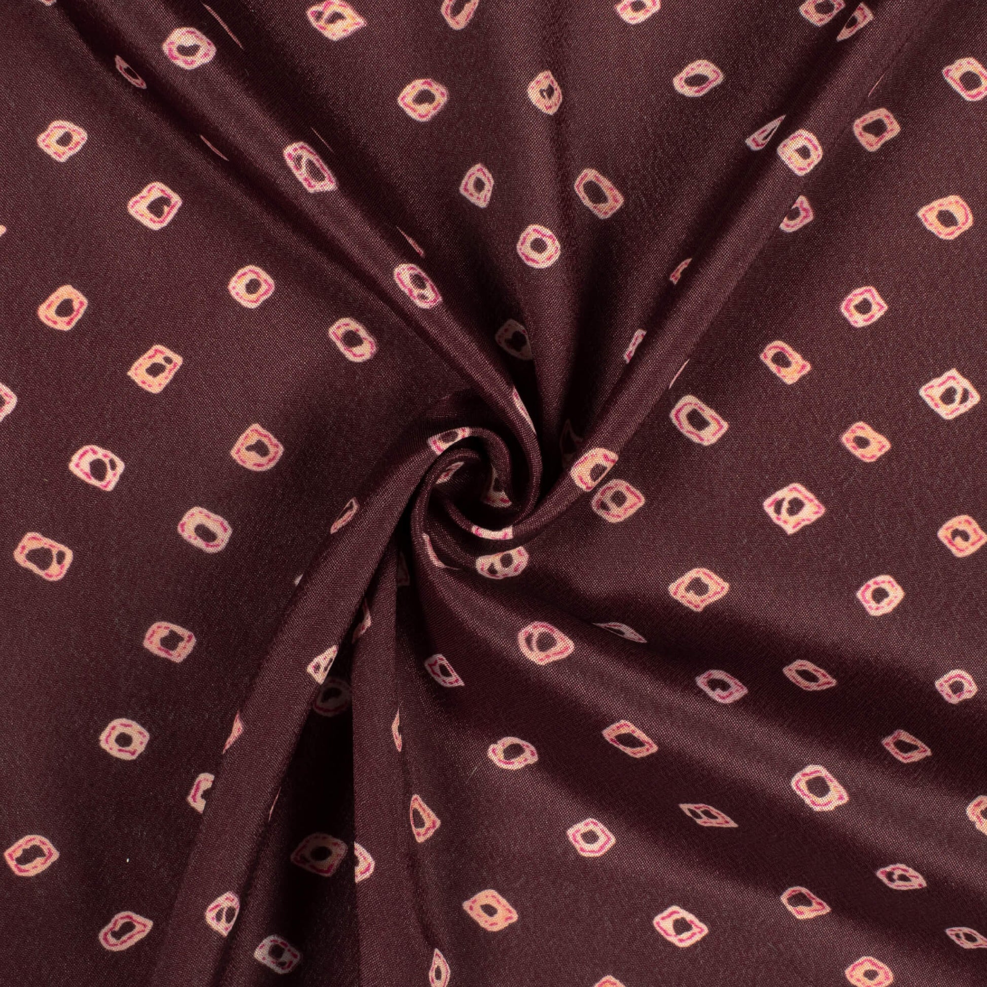 Hickory Brown Bandhanii Pattern Digital Print Crepe Silk Fabric