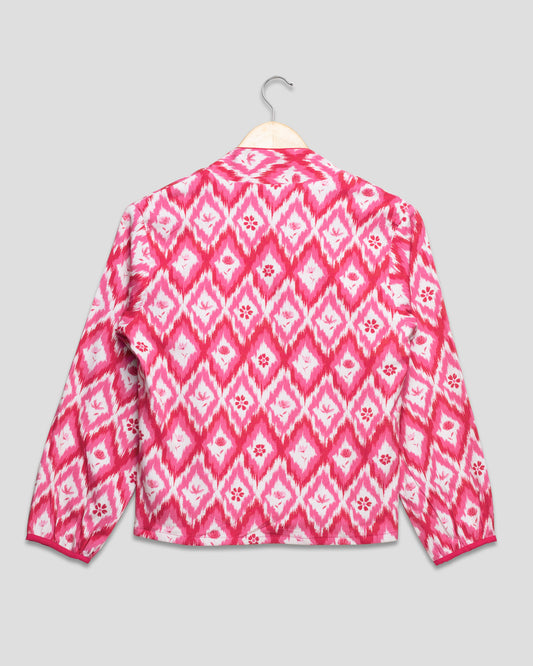 Devi Drape: Women's Ikkat Printed Reversible Jacket Devi Drape: Women's Ikkat Printed Reversible Jacket