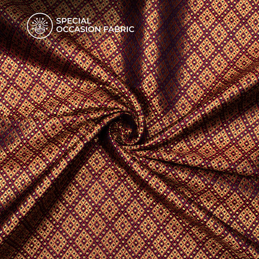 -20% offNavy Blue And Red Geometric Pattern Pure Katan Banarasi Silk Fabric Navy Blue And Red Geometric Pattern Pure Katan Banarasi Silk Fabric