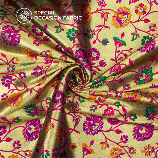 -20% offMagenta Pink And Golden Floral Pattern Pure Katan Tissue Banarasi Silk Fabric Magenta Pink And Golden Floral Pattern Pure Katan Tissue Banarasi Silk Fabric