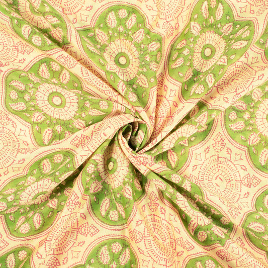 -40% offCream And Pear Green Traditional Pattern Handblock Pure Banarasi Chanderi Fabric Cream And Pear Green Traditional Pattern Handblock Pure Banarasi Chanderi Fabric