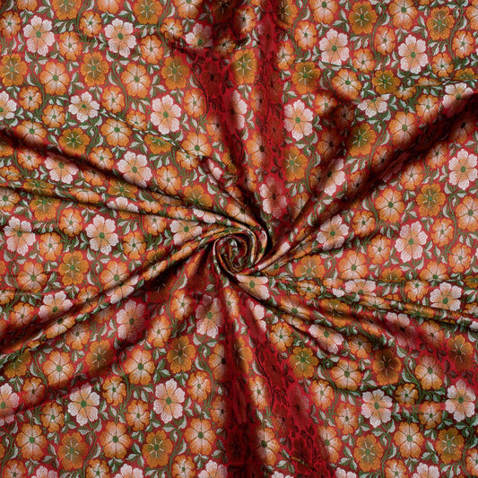 -20% offBrick Red And Yellow Floral Pattern Banarasi Resham Brocade Katan Silk Fabric Brick Red And Yellow Floral Pattern Banarasi Resham Brocade Katan Silk Fabric