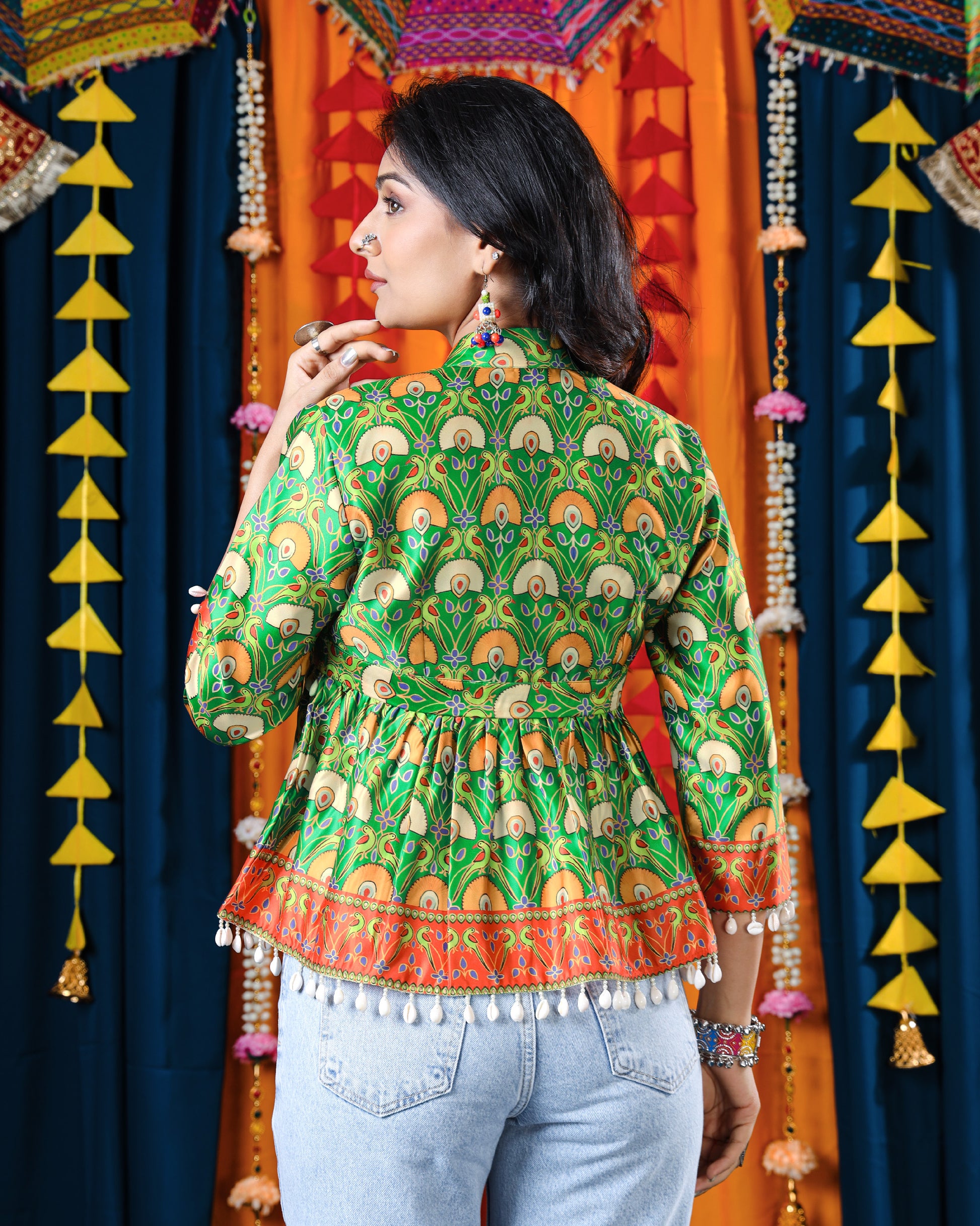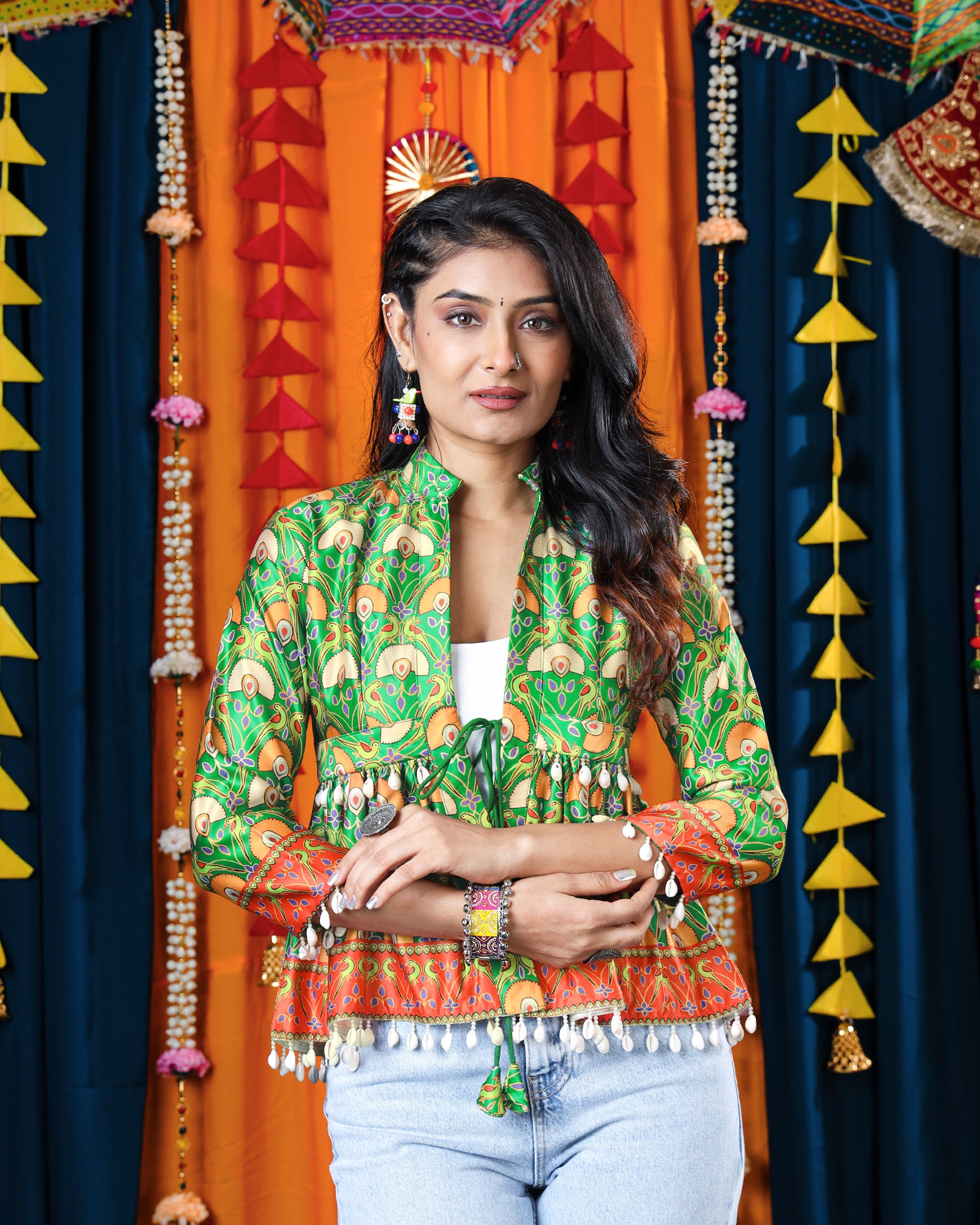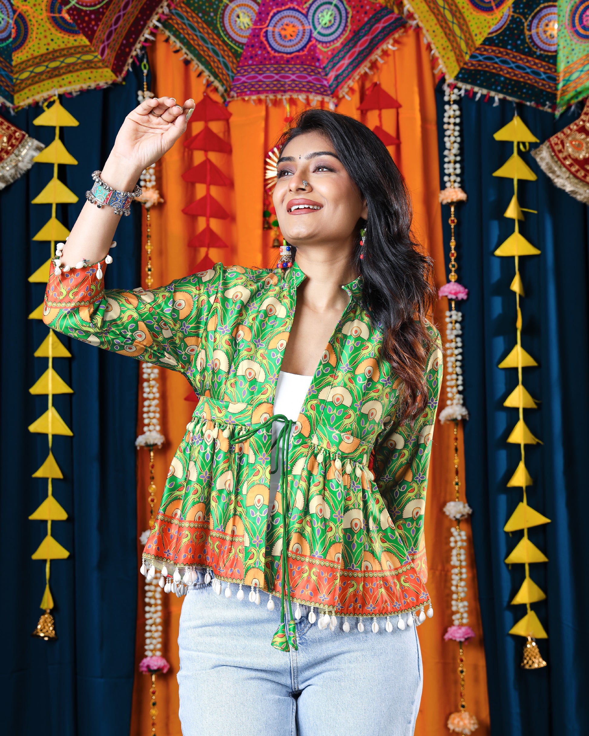 Celebrate the vibrance and energy of Navratri with our exclusive collection of Navratri jackets. These jackets are designed to add a contemporary twist to your traditional look, perfect for the joyous Garba nights. Crafted from high-quality fabrics with intricate patterns and vibrant colors, these jackets are not just a piece of clothing but a statement of culture and style. Pair them with your favorite lehengas or jeans for a fusion look that stands out.