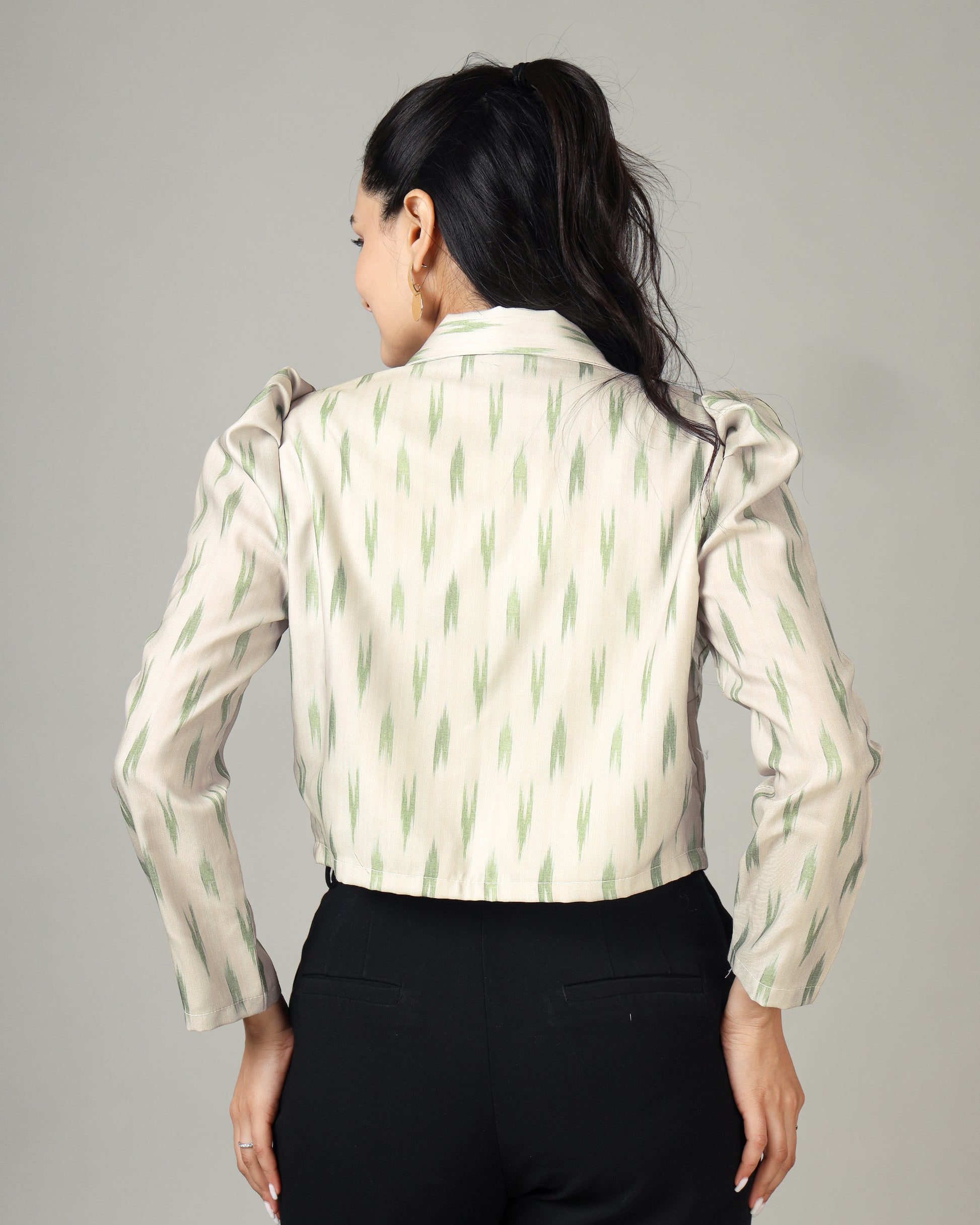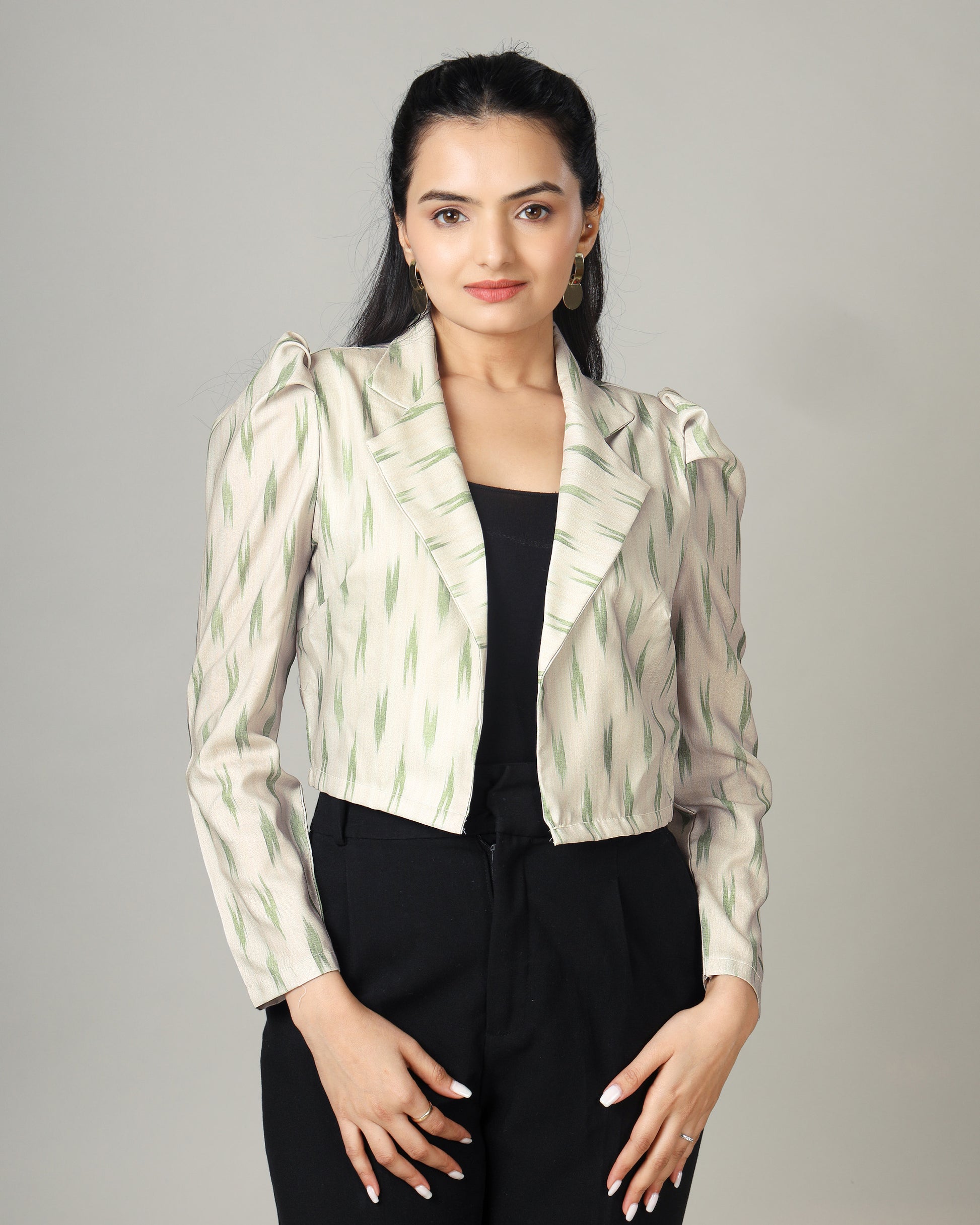 Unveil Artistry in Our Ikkat Pattern Women's Crop Jacket