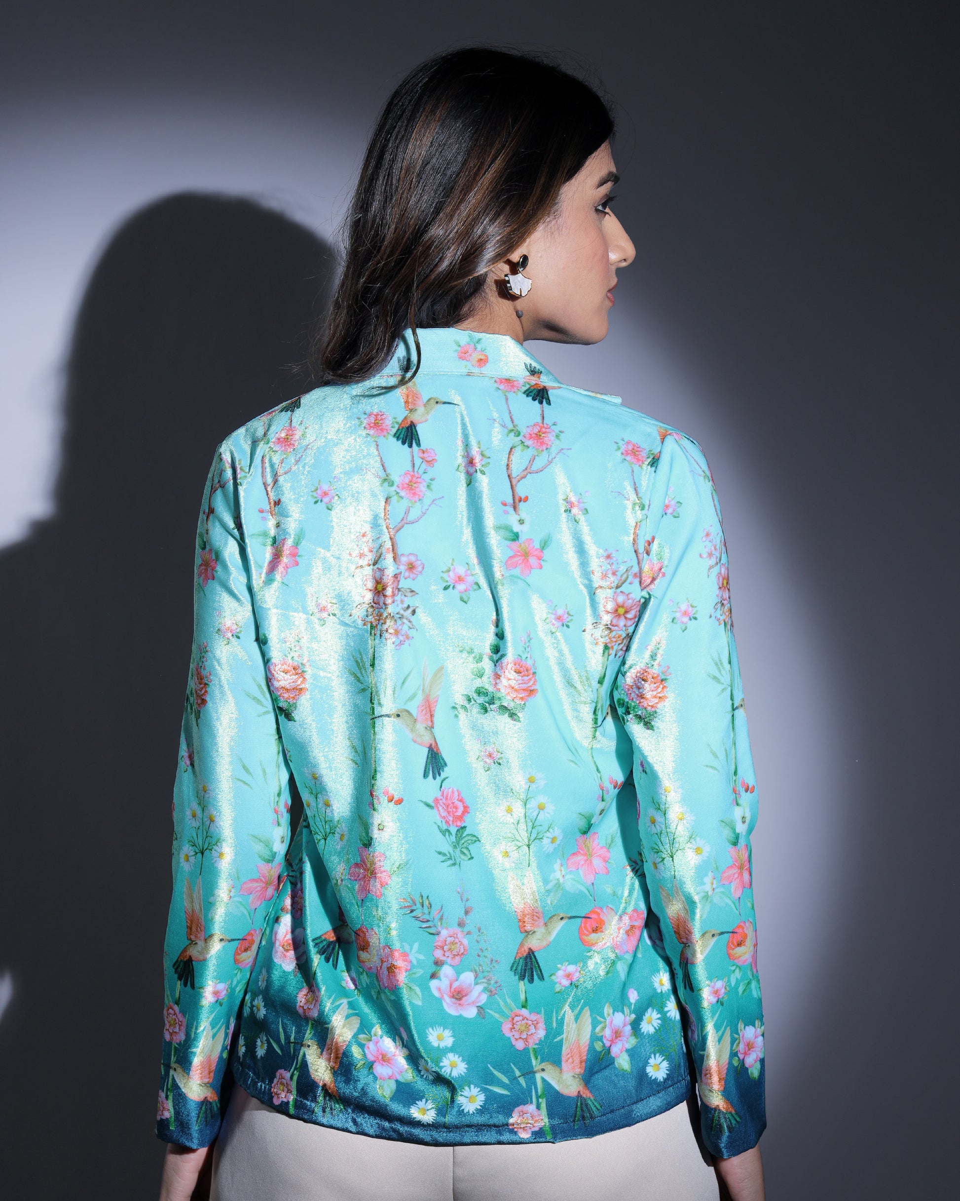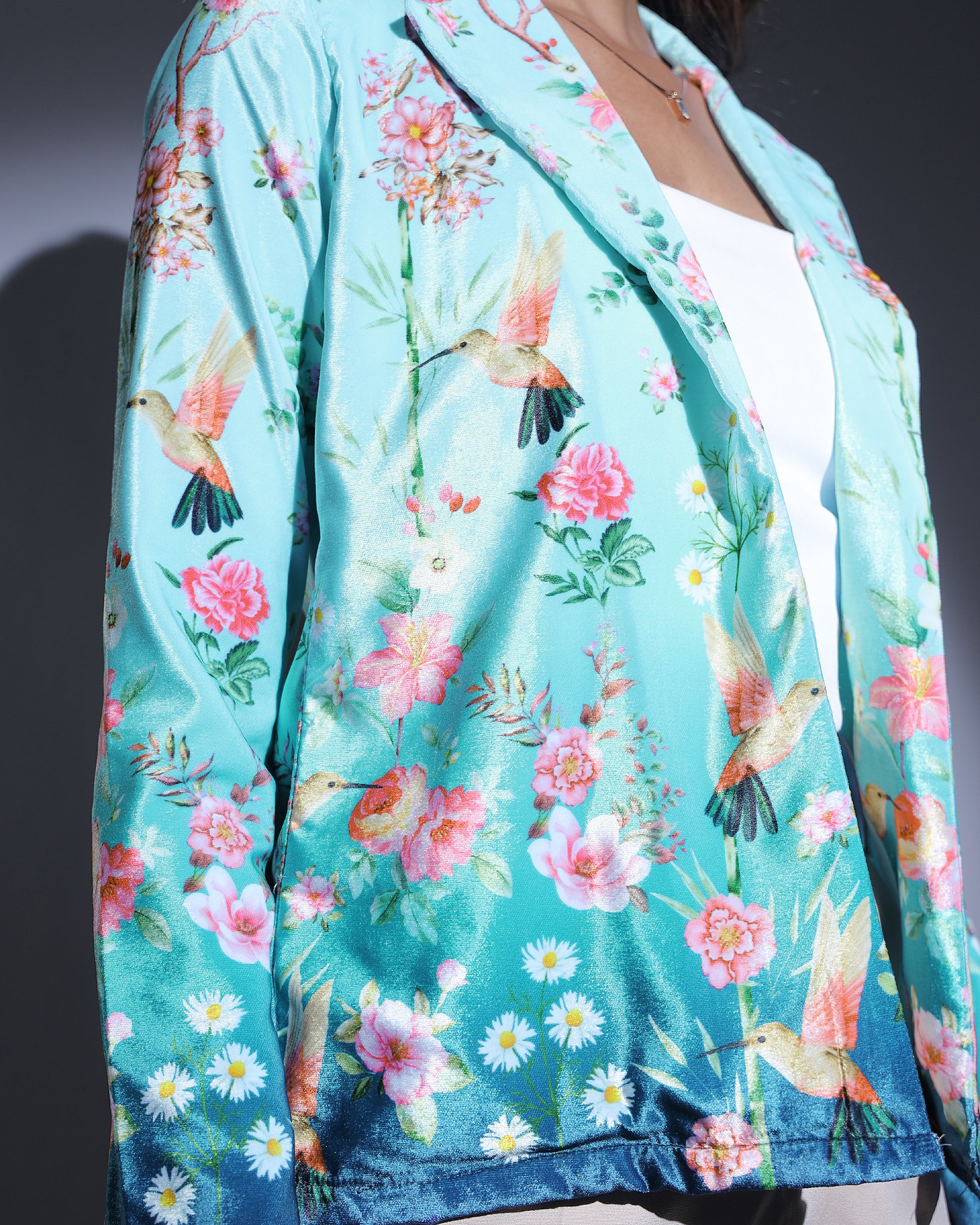 Velvet Edit: Lux Rose and Birds Ombre Velvet Jacket For Women