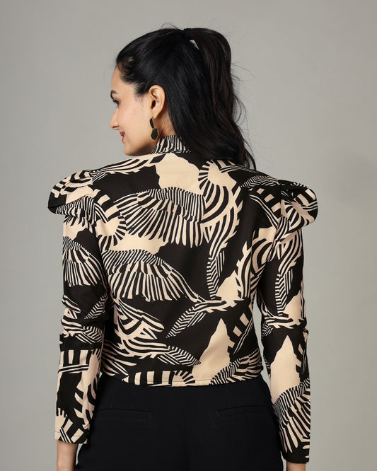 Ride the Fashion Current with Our Abstract Crop Jacket Ride the Fashion Current with Our Abstract Crop Jacket