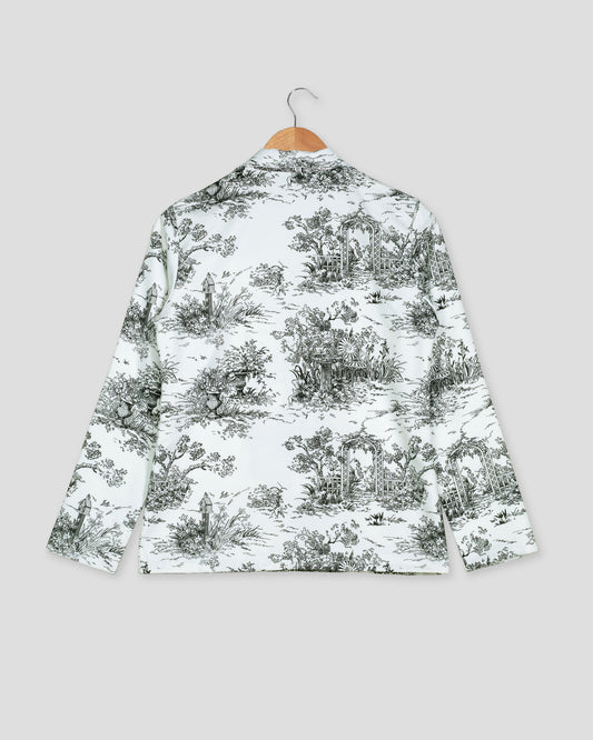 Spring's Chic Cover-Up: Women's Toile Print Jacket Spring's Chic Cover-Up: Women's Toile Print Jacket