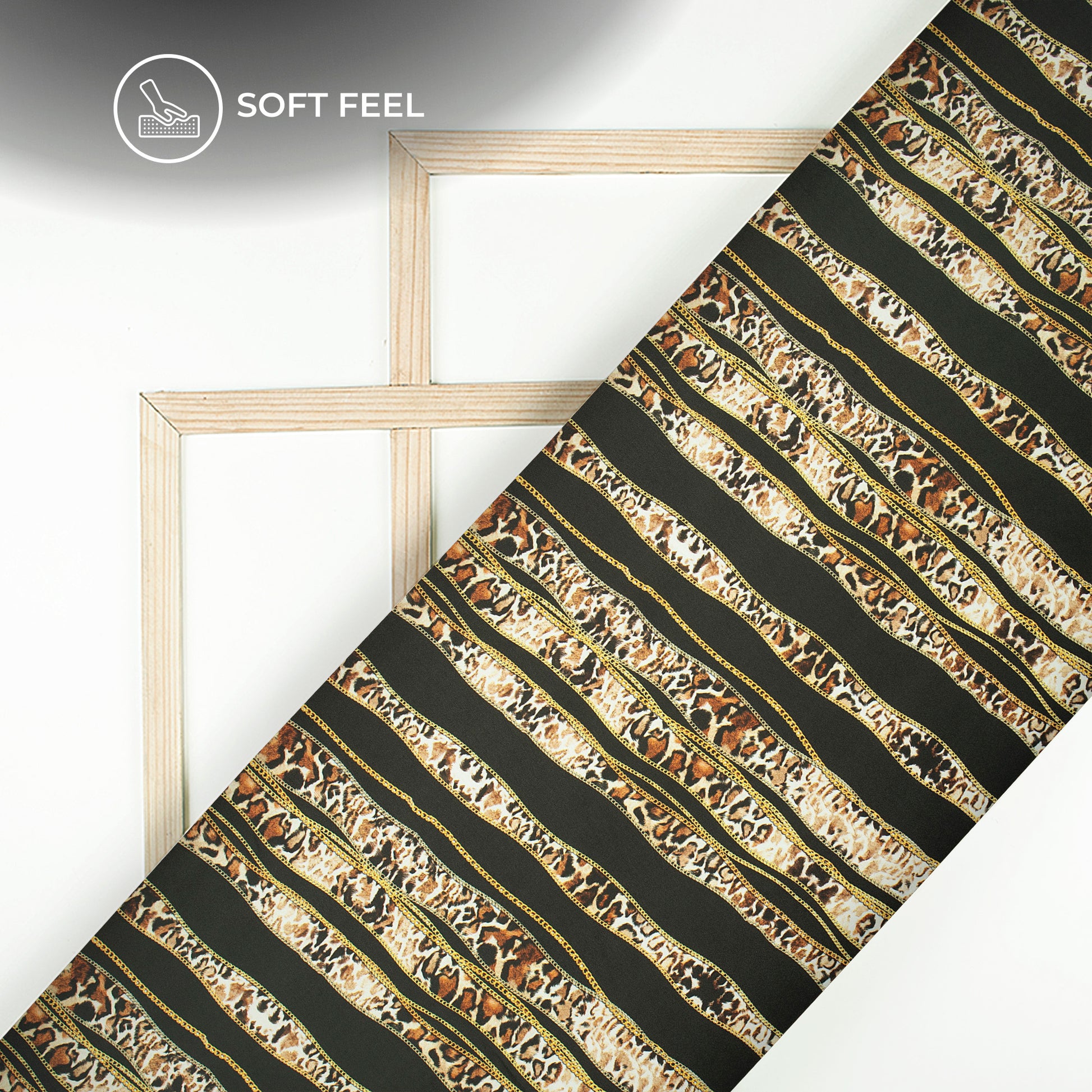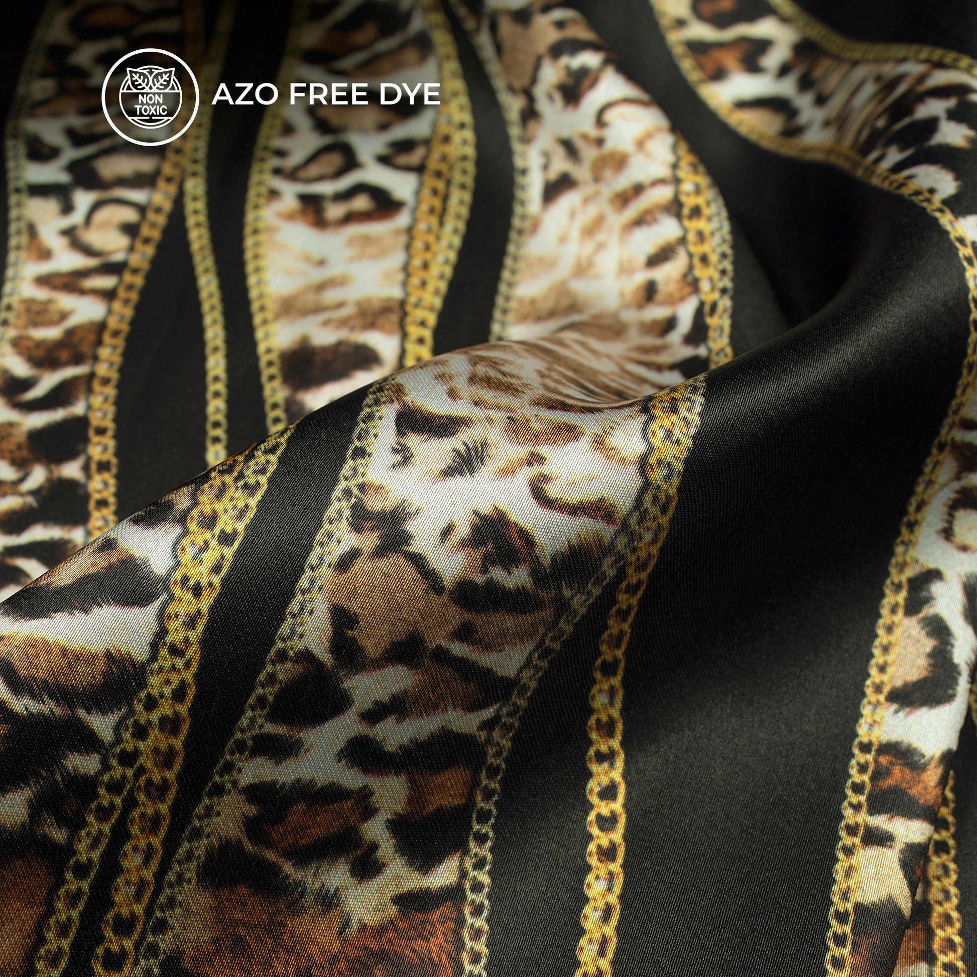 Animal Chain Design Stripes Digital Print Japan Satin Fabric