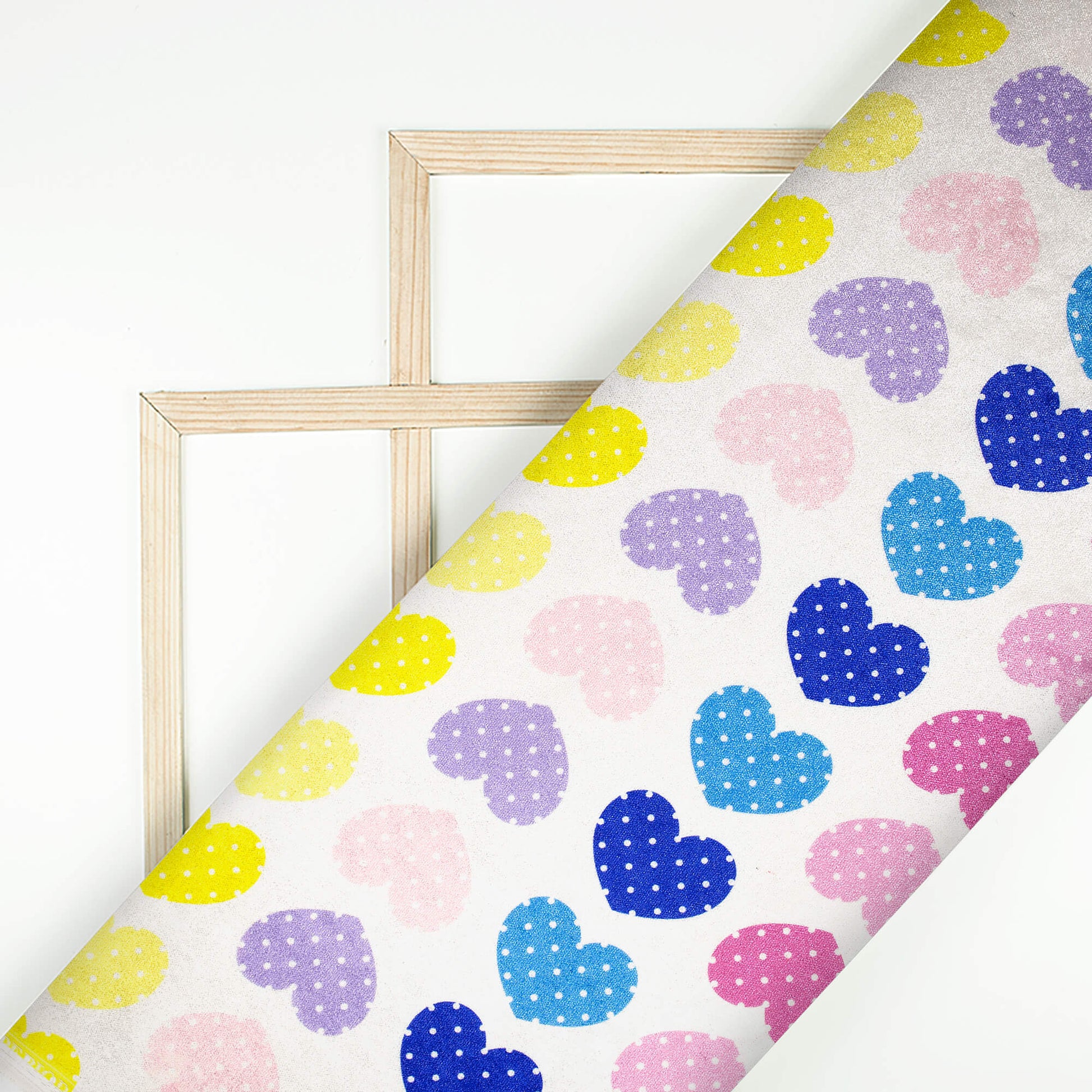 Heart With Polka Dots Print Premium Velvet Fabric