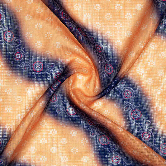 Orange And Teal Blue Pichwaii Digital Print Kota Doria Fabric Orange And Teal Blue Pichwaii Digital Print Kota Doria Fabric