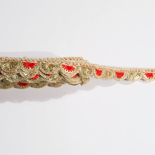 Red Resham Thread and Sequins Scalloped Lace (9 Mtr) Red Resham Thread and Sequins Scalloped Lace (9 Mtr)Regular price ₹ 699.00Unit price perSale price ₹ 699.00 Regular price