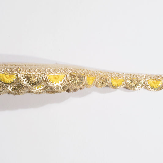 Yellow Resham Thread and Sequins Scalloped Lace (9 Mtr) Yellow Resham Thread and Sequins Scalloped Lace (9 Mtr)Regular price ₹ 699.00Unit price perSale price ₹ 699.00 Regular price