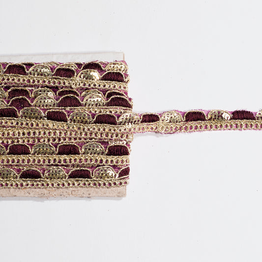 Dark Purple Resham Thread and Sequins Scalloped Lace (9 Mtr) Dark Purple Resham Thread and Sequins Scalloped Lace (9 Mtr)Regular price ₹ 699.00Unit price perSale price ₹ 699.00 Regular price