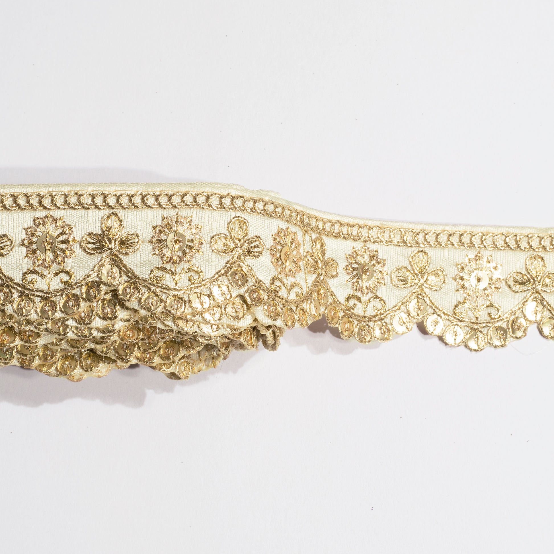 Ivory Cream Fancy Sequins Adorn Delicate Scalloped Lace (9 Mtr)
