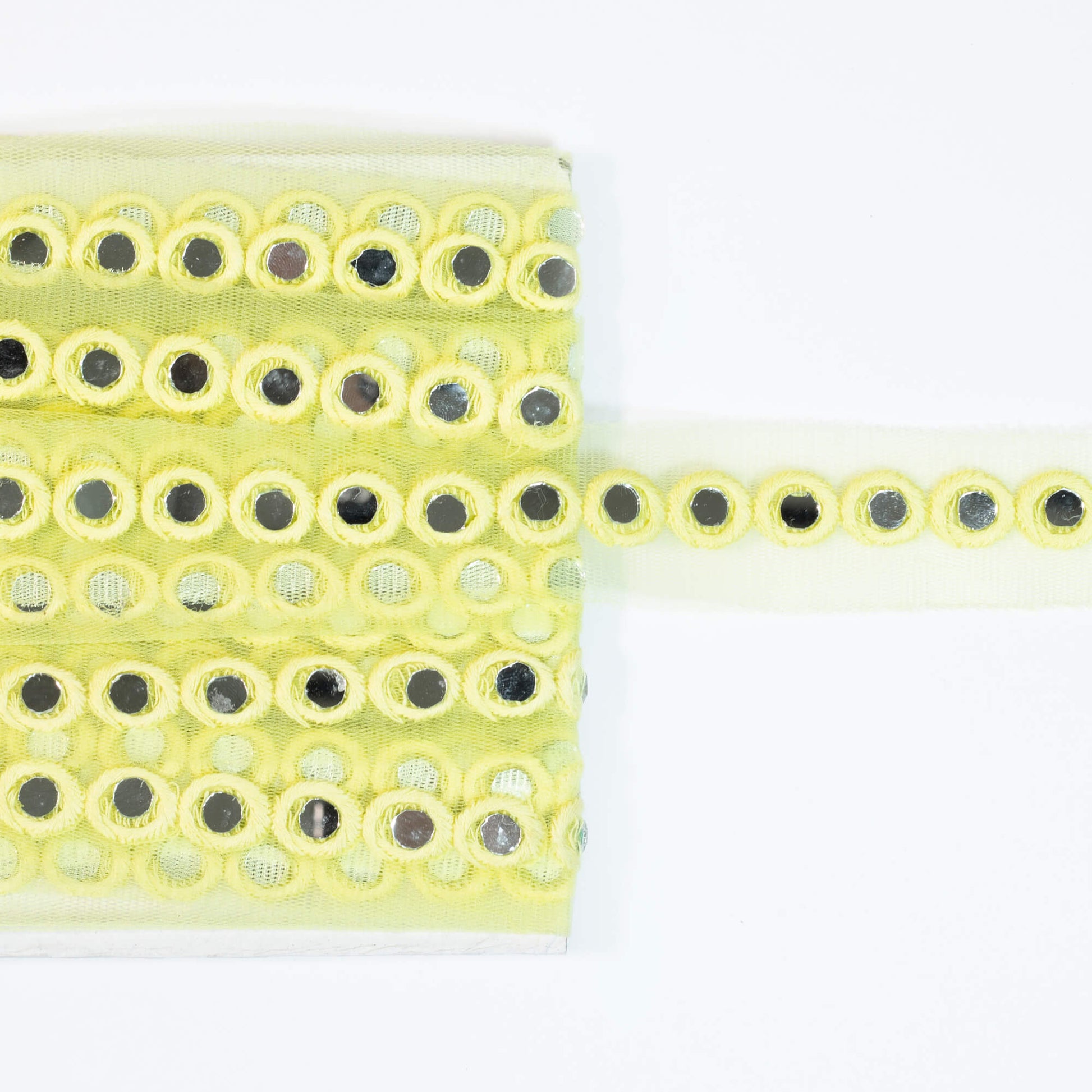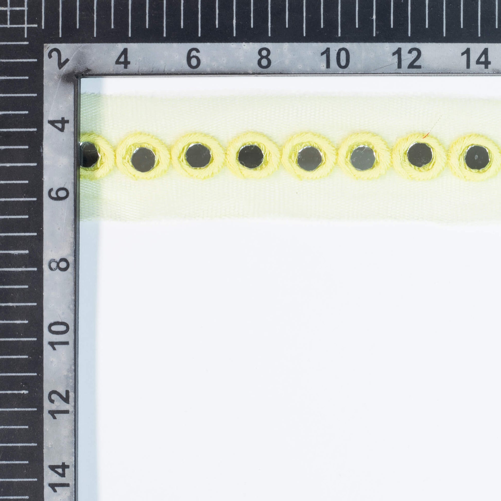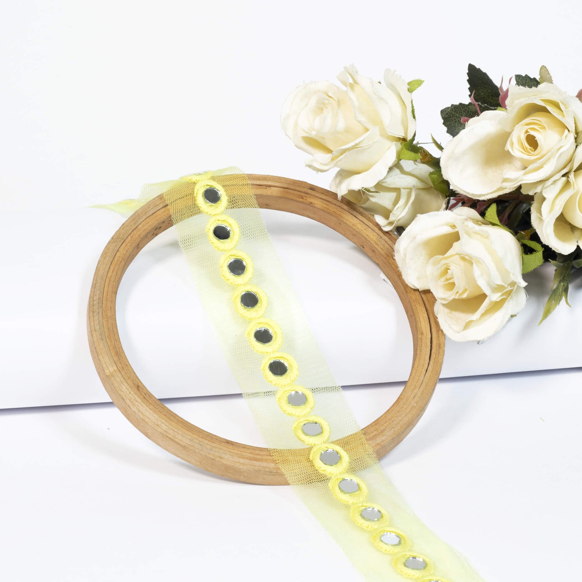 Lemon Yellow Booti Pattern Embroidery With Mirror Work Net Lace (9 Mtr)